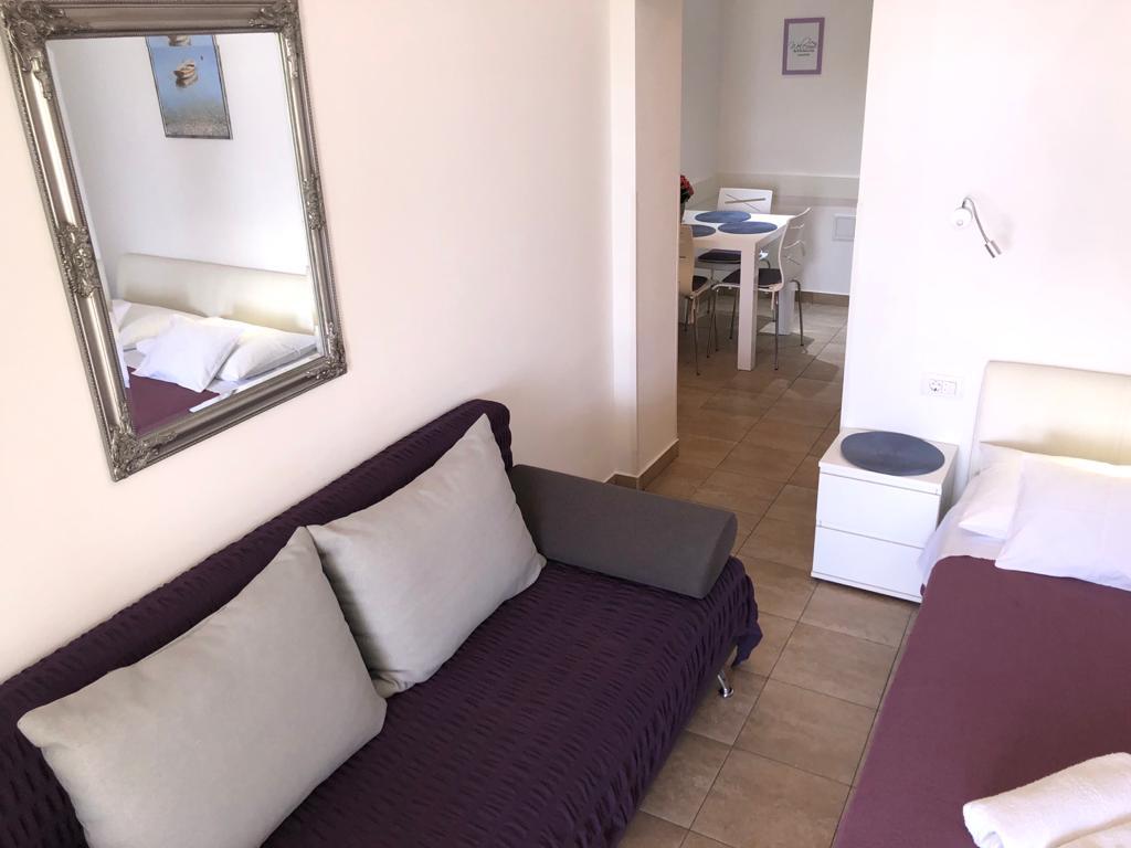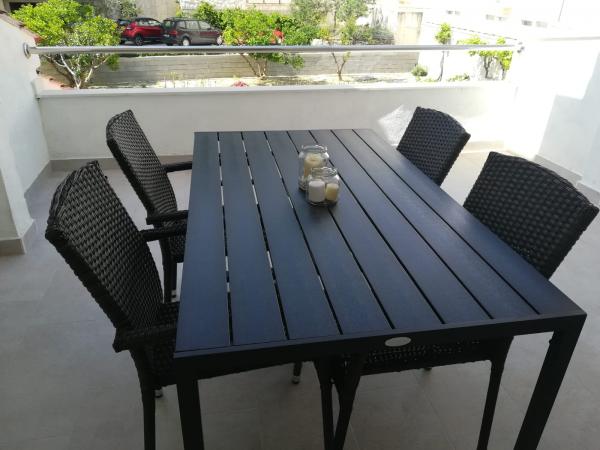 Remek hely családok számára és még sok más számára. Épület otthonos légkörrel, nagyszerű tulajdonosok. Tiszta, barátságos parkoló áll rendelkezésre. Maga a lakás nagyon friss, jól felszerelt és nagyszerű kényelmet kínál 4 fő számára. Szuper nagy terasz. Lakásunk nem volt tengerre néző, ezért szándékunk szerint választottuk, mert nagyon csendes és meghitt, és a tenger és a gyönyörű homokos strandok az utca túloldalán vannak (nagyon közel a sávokhoz). Nagyon ajánlom és köszönöm Marinak a kellemes tartózkodást.