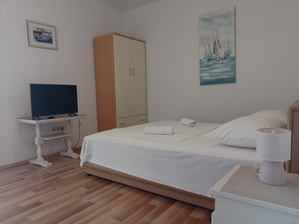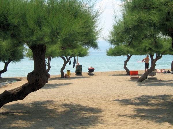 Fantasztikus! Tiszta, bőséges hely lépés a fás homokos strandhoz. A kilátás csodálatos.Az előszobában további nagy hűtőszekrény 2 apartman számára. Ingyenes légkondicionálás. Nincs klímadíj. Omis központjába, hídhoz, 20 perc sétára. Csendes környék, de vannak helyiségek, így ki lehet menni inni vagy enni. Nagyon ajánlom
