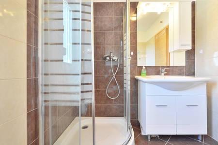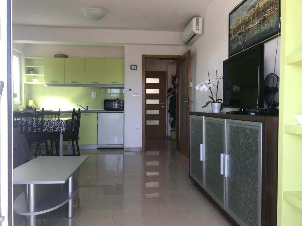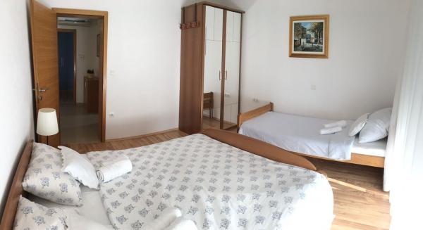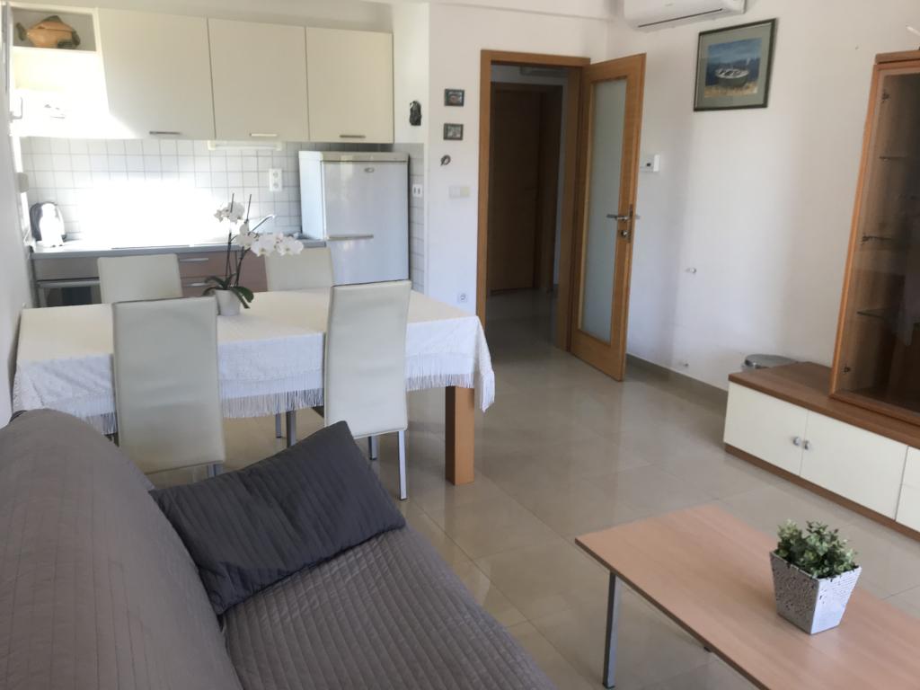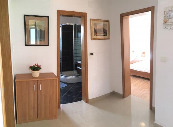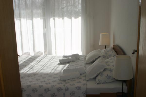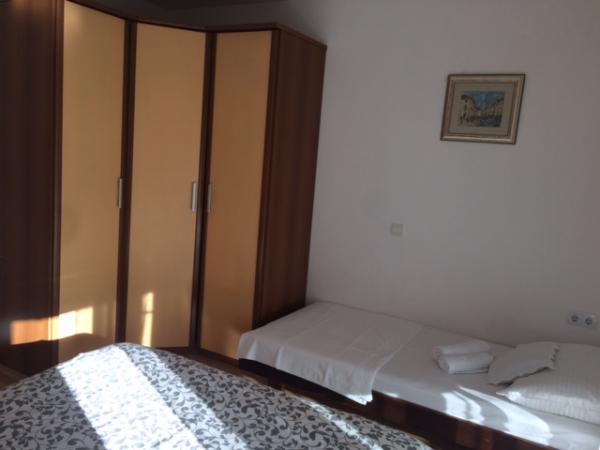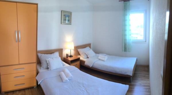 A házban két 75 négyzetméteres lakás található. Minden apartmanban két hálószoba van, az egyikben két ágy, a másikban három ágy található. A tágas konyhában nappalival két személy elszállásolására van lehetőség a kanapén. A folyosón található egy fürdőszoba WC-vel és WC-vel. Mindkét apartmanhoz tágas erkély tartozik, kilátással a tengerre. A földszinten autógarázsok találhatók. A háztól 150 méterre lévő strand eléréséhez át kell menni az úton. A közelben többféle strand és a tenger mélysége közül választhat. Gyermekek számára alkalmas. A strandon a fürdés és napozás mellett számos további szórakozási forma közül válogathatunk. A kenyérkioszk távolsága 50 méter, az üzletek 200 méter, a közelben többféle étterem található.