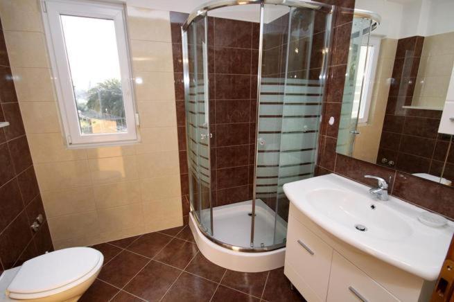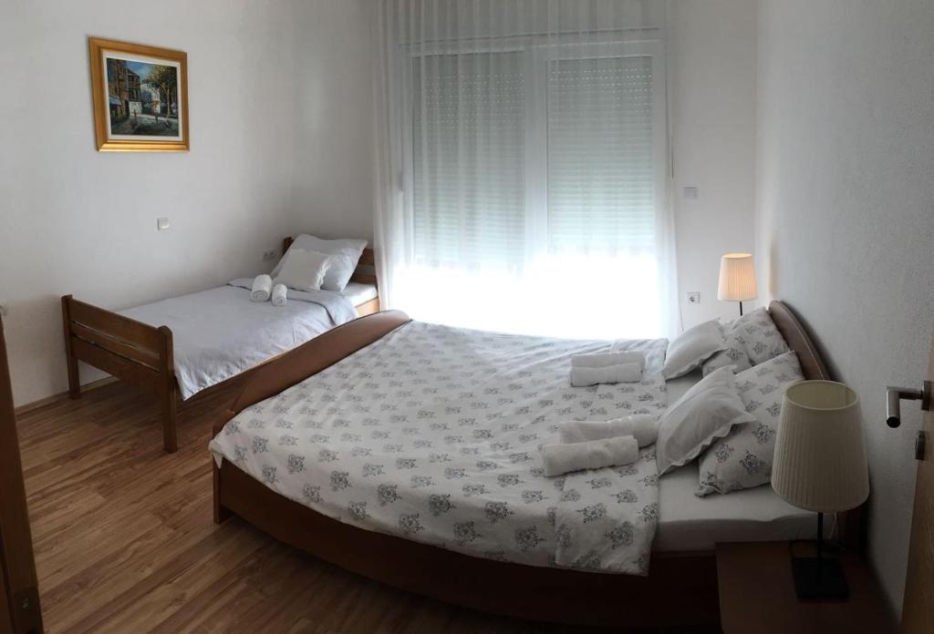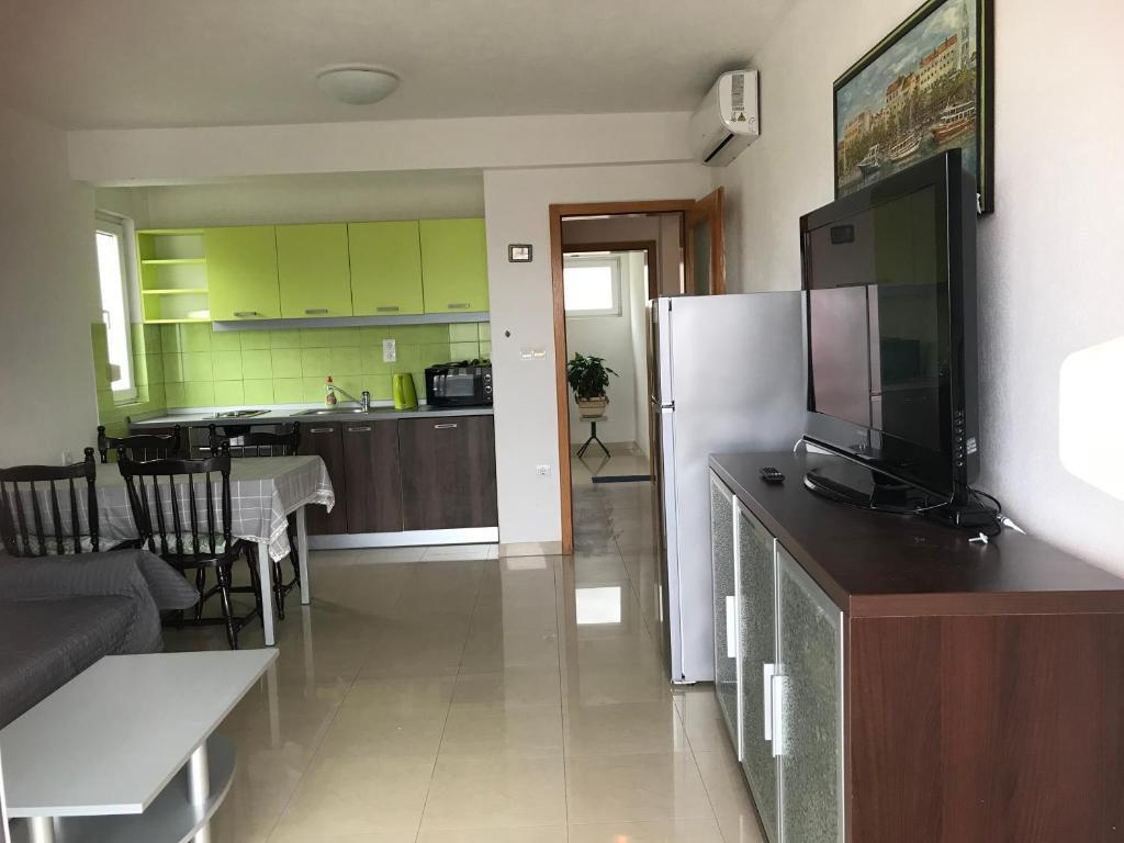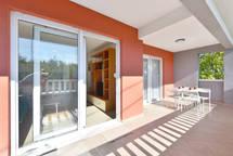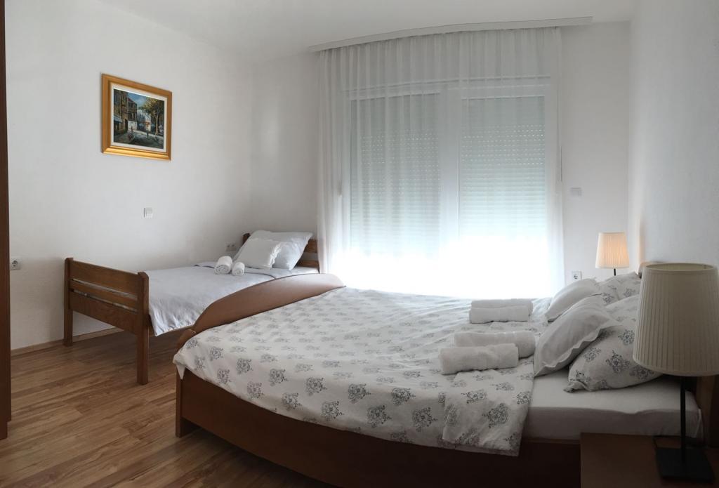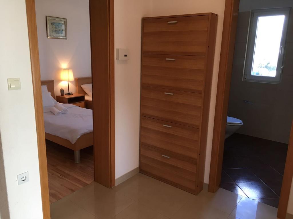 A házban két 75 négyzetméteres lakás található. Minden apartmanban két hálószoba van, az egyikben két ágy, a másikban három ágy található. A tágas konyhában nappalival két személy elszállásolására van lehetőség a kanapén. A folyosón található egy fürdőszoba WC-vel és WC-vel. Mindkét apartmanhoz tágas erkély tartozik, kilátással a tengerre. A földszinten autógarázsok találhatók. A háztól 150 méterre lévő strand eléréséhez át kell menni az úton. A közelben többféle strand és a tenger mélysége közül választhat. Gyermekek számára alkalmas. A strandon a fürdés és napozás mellett számos további szórakozási forma közül válogathatunk. A kenyérkioszk távolsága 50 méter, az üzletek 200 méter, a közelben többféle étterem található.