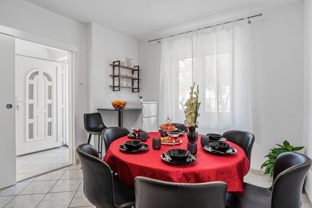 Az Apartments Miroslav Vojnović Duće turisztikai város központjában található, a Split-Omis riviéra részeként. Családi ház tágas kerttel és csodálatos kilátással a tengerre. A gyönyörű homokos strand ideális családi nyaraláshoz gyerekekkel. A strand mindössze 50 m-re található a háztól. Öt kényelmes és felszerelt apartman áll a vendégek rendelkezésére, amelyek az otthon érzését nyújtják a nyaralás alatt. Érkezés a hét bármely napján lehetséges. Az apartmanok az érkezés napján 10 órától állnak rendelkezésre. Ez lehetővé teszi a vendégek számára, hogy hosszabb ideig maradjanak, és a vendégek igényeikhez igazíthatják az utazási tervet. A ház földszintjén található egy nagyméretű, 4+2 fős A5-ös apartman saját terasszal. További kényelmes apartmanok A1, A2, A3 és A4 2 fő részére a ház második emeletén találhatók, és mindegyik légkondicionált. Lehetőséget kínálunk kisebb apartmanok összevonására is a vendég igényei szerint. Nagyobb városközpontok közelsége (Split 20 km, Omiš 3 km).