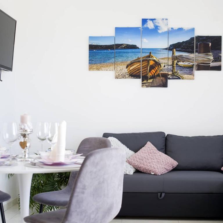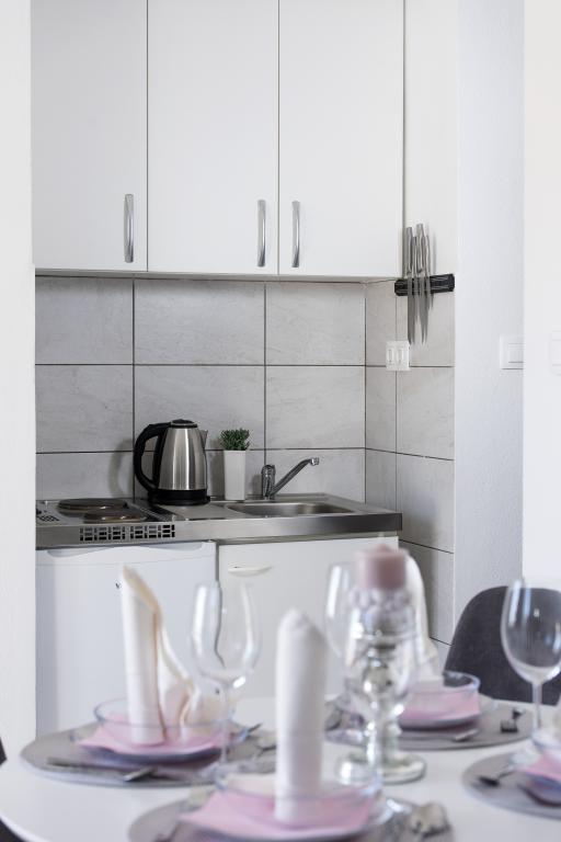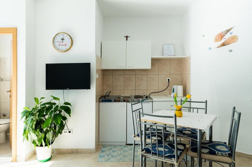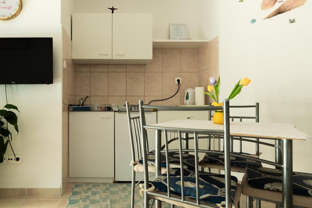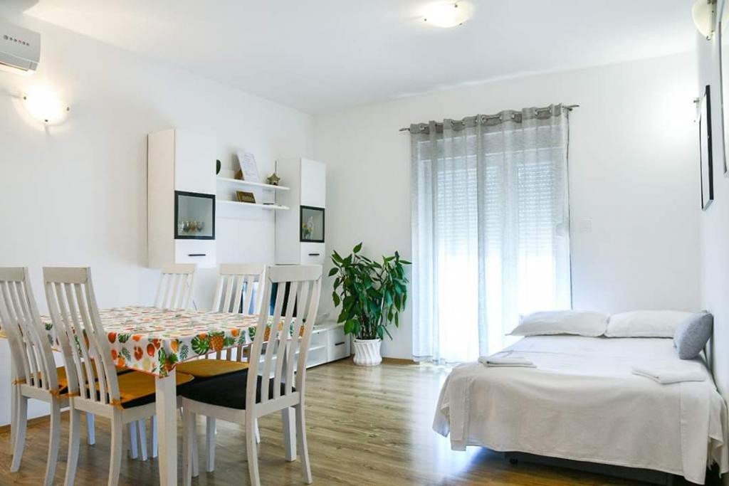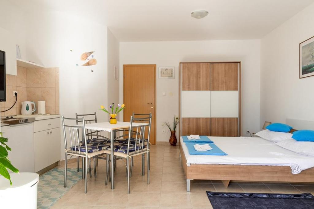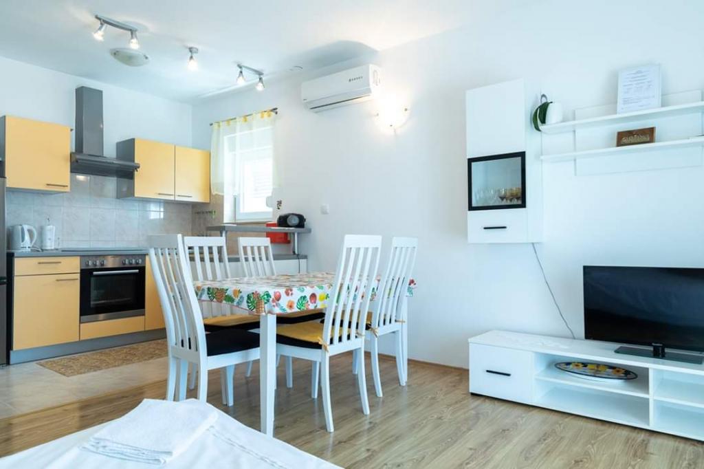 Teljesen felújított, légkondicionált apartmanok tengerre néző kilátással egy csendes turisztikai helyen. Közel a különböző szolgáltatásokhoz, üzletekhez, bárokhoz, éttermekhez. A homokos tengerparton, valamint a tiszta tenger mellett különféle sportolási és szabadidős lehetőségeket kínálnak. Vendégeink kedvezményeket kapnak bizonyos éttermekben, raftingozásban, hajókirándulásokban a Cetina folyó kanyonján, hajókirándulásokon Brac szigetére, jet-ski-ben, csónakkölcsönzésben, valamint a legkisebbeknek banán- és csőutakon. Az ár tartalmazza az internetet, a SAT -ot, a privát parkolást és a szabadtéri grill használatát.