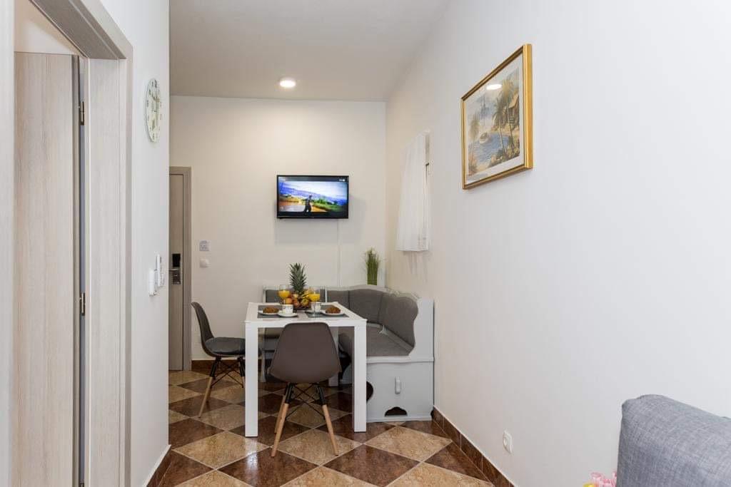 Az Apartments Kristal Duce területén található. Teljesen felújított és tágas, kényelmes szállást és pihenést biztosít. Légkondicionált apartman hálószobával, felszerelt konyhával, síkképernyős TV-vel és tágas terasszal. Az apartmanhoz 1 fürdőszoba tartozik. A vendégek rendelkezésére áll egy grillező a házban, saját parkoló és ingyenes wi-fi. Az apartman 100 méterre található a strandtól, ahol étterem és kávézó található. Dugi Rat központjában, 500 m-re találhatók: szupermarketek, klinika, gyógyszertár, pénzváltó, posta és kávézók. Split 18 km-re, Makarska pedig 34 km-re található. Split repülőtere 30 km-re található.