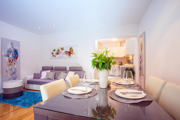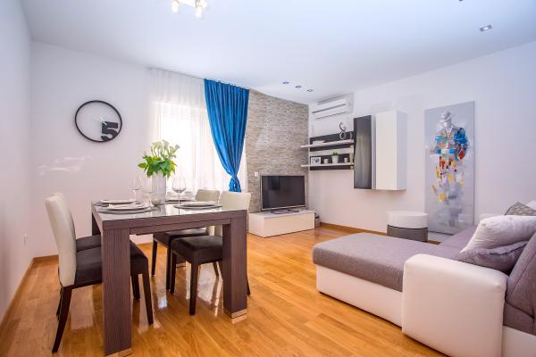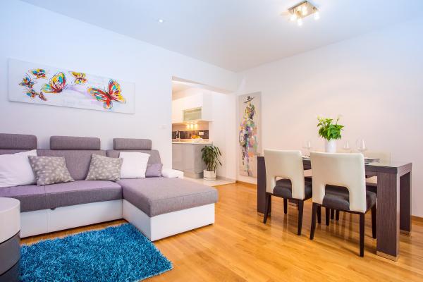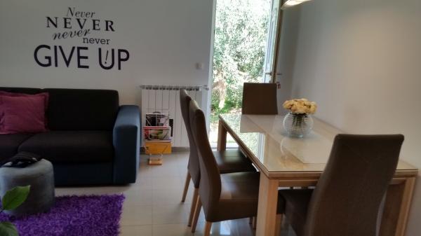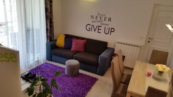 Új építésű lakás jól felszerelt, nyugodt környezetben a Split. Az apartman található, 2 perc sétára a városközponttól és 5 percre a strandtól és mellett található a sportlétesítmény. Az apartman található, egy csendes utcában, az első emeleten egy családi ház. : Légkondicionáló; tv 900 programokban; Wi-Fi internet-hozzáférés; mosogatógép, mosógép, és egy teljesen felszerelt konyha. Az apartmanban egy hálószoba franciaággyal krevettom; nappali kihúzható ággyal, 1 fürdőszoba és egy erkély asztallal és székekkel, valamint egy garázs az autó. Doamćin áll bármilyen Coyne segítséget és tanácsot. Már nagyon várjuk, hogy minden az érkezés.