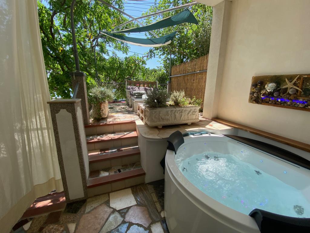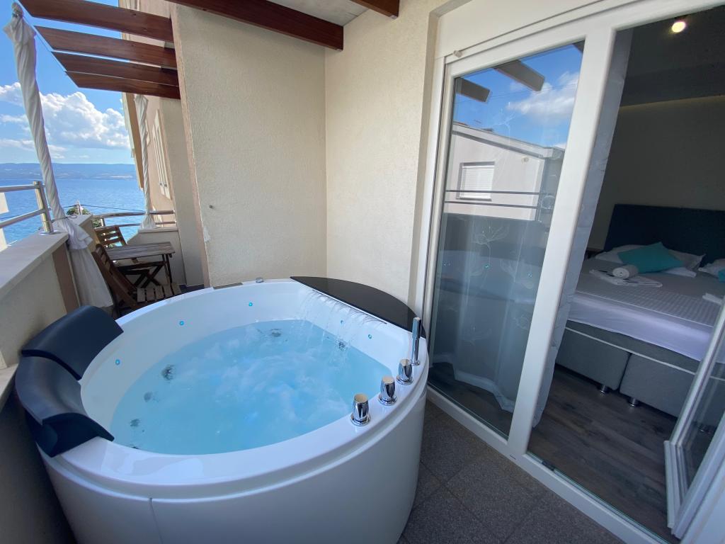 Fényűzően felszerelt apartmanok csendes környéken, saját hidromasszázs káddal (jacuzzival), a tengertől az első sorban találhatók. A ház előtt kavicsos strand, a közelben pedig egy strandkávézó található. A helyszínen ingyenes parkolási lehetőség biztosított.