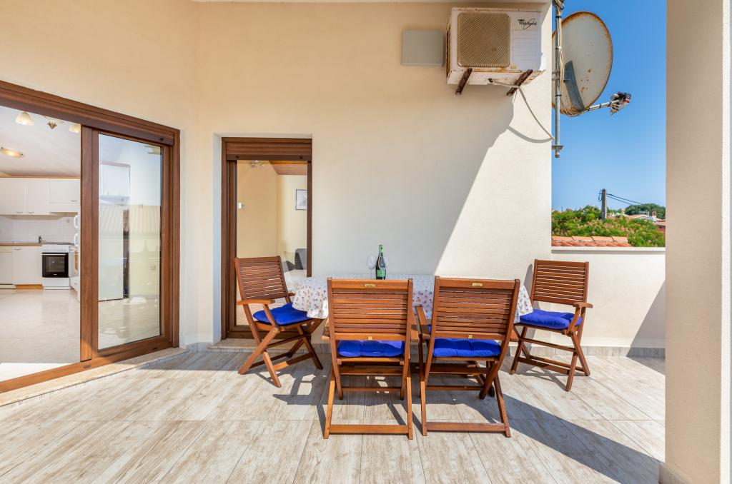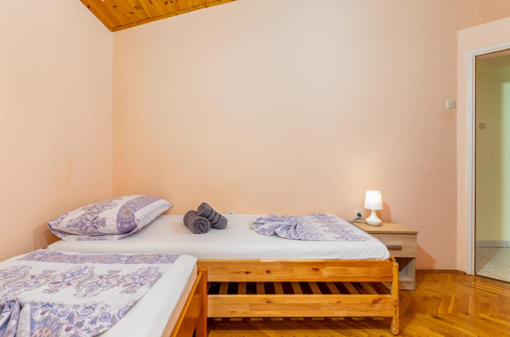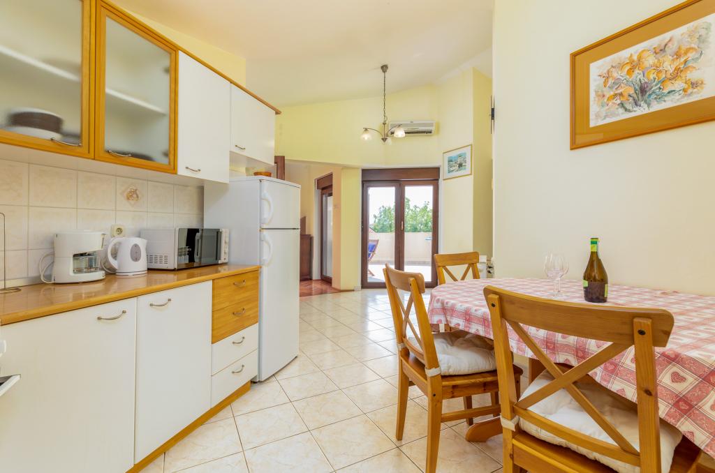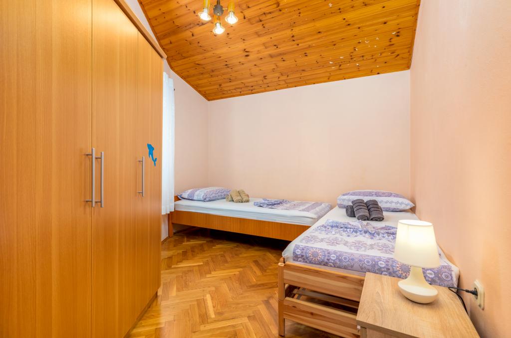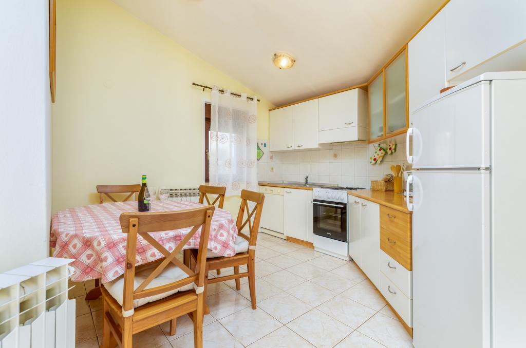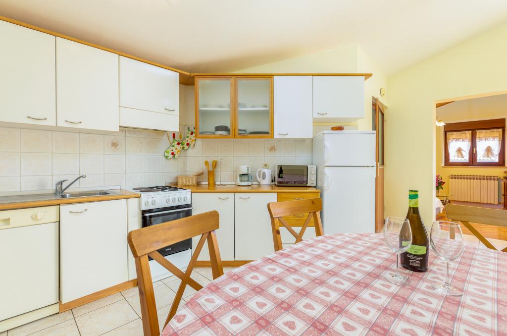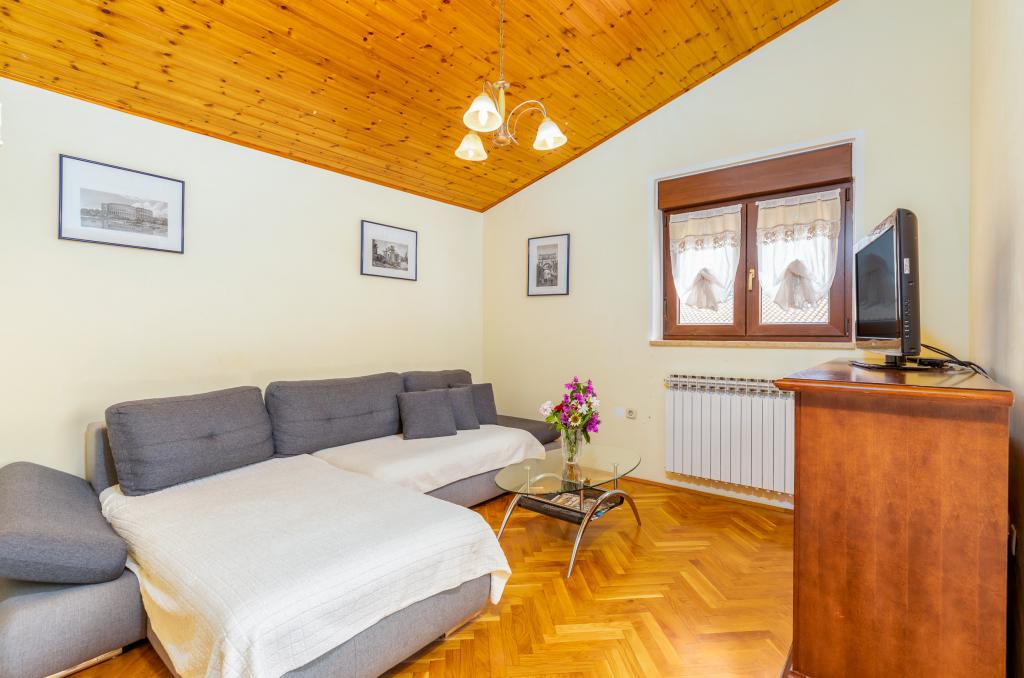 Teljesen és modernül felszerelt, tágas nyaralóapartman Valbandon csendes részén. Az apartmanban található egy hálószoba franciaággyal, egy hálószoba két egyszemélyes ággyal, konyha étkezővel, nappali, fürdőszoba és egy szép nagy terasz. A családi ház első emeletén található, ahol lakunk, és külön bejárattal rendelkezik.