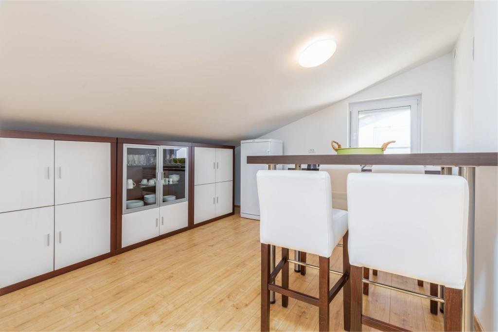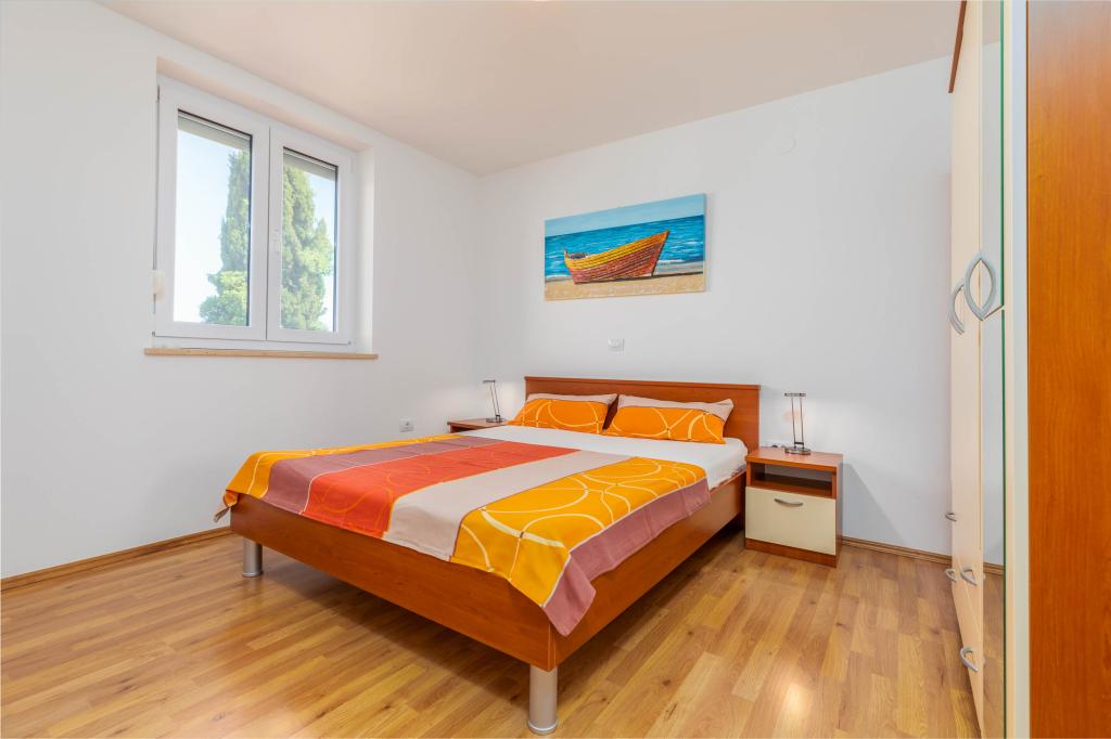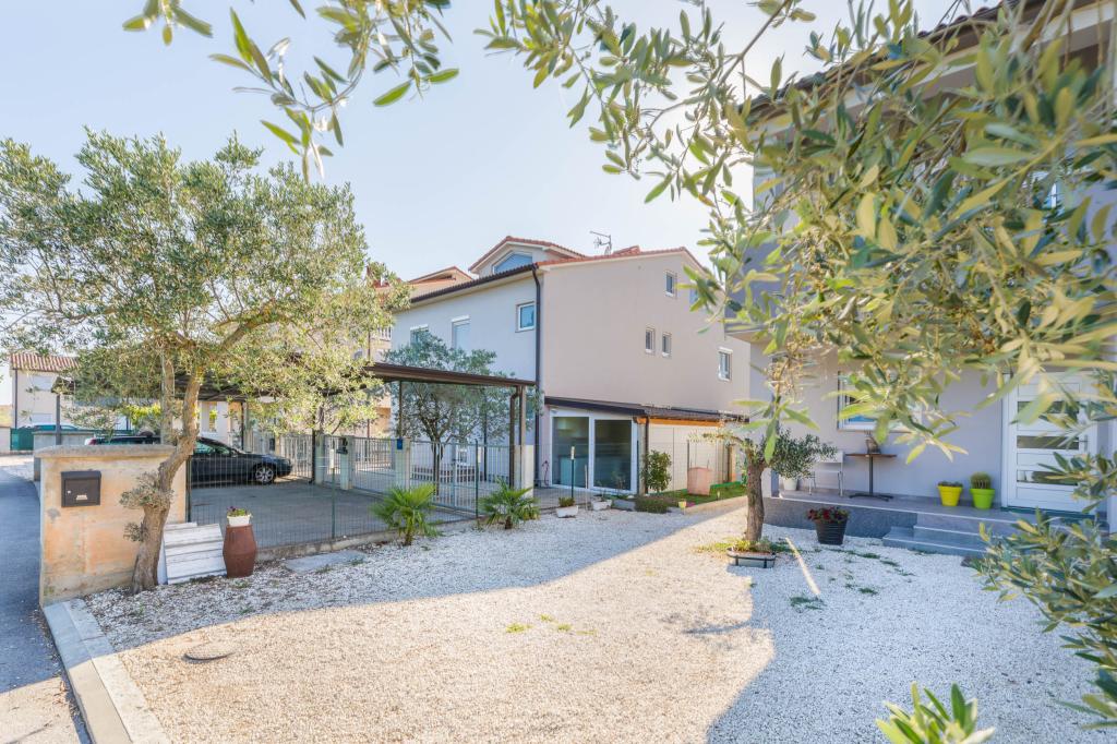 Új, kényelmes apartmanok egy 2014-ben épült házban. Mindössze 800 méterre találhatók a strandtól és a városközponttól, Fažana zöld és csendes részén. A családi ház első és második emeletén találhatók, teljes magánéletet, kikapcsolódást, pihenést biztosítanak. A környék nagyon csendes, csak néhány családi ház található a környéken. Másrészt nincs messze a strandtól és a városközponttól. A legközelebbi piac 5 perces sétával elérhető. A város központjában számos étterem, kávézó, üzlet, ajándékbolt, gyógyszertár, orvos, posta, bank, buszpályaudvar, ATM-ek találhatók - minden, ami egy tökéletes nyaraláshoz kell.