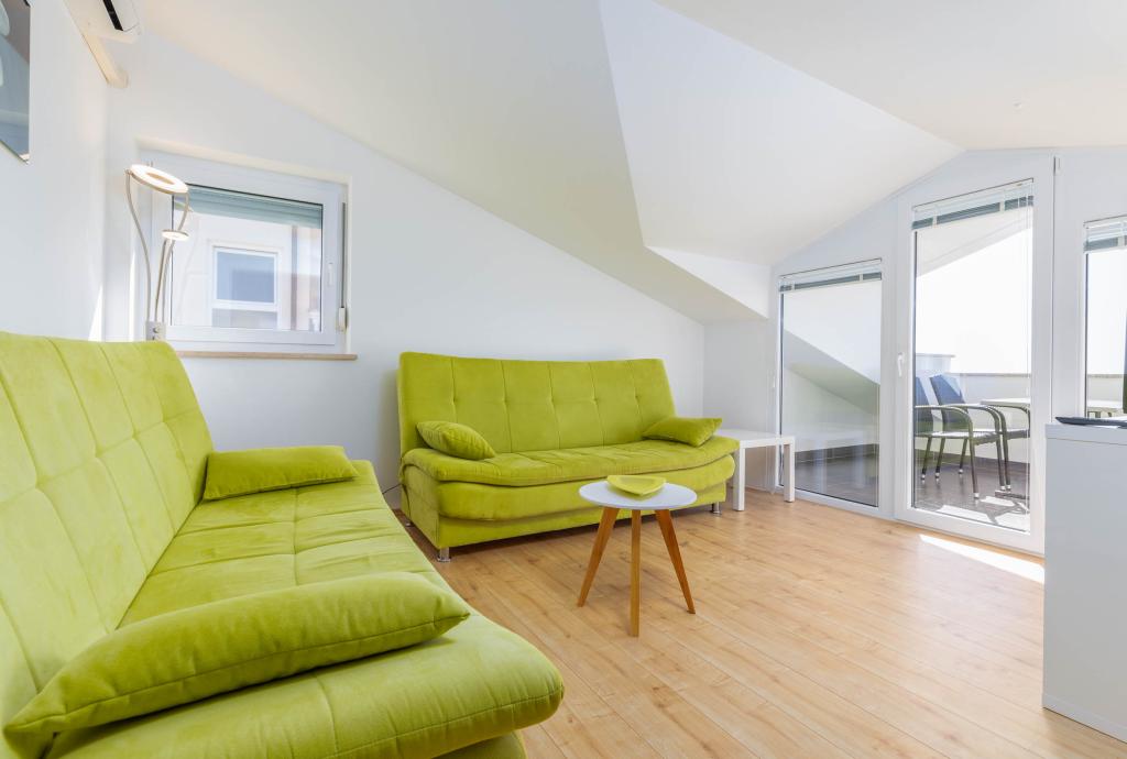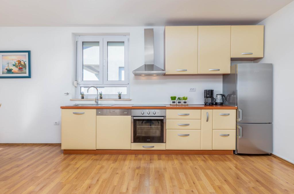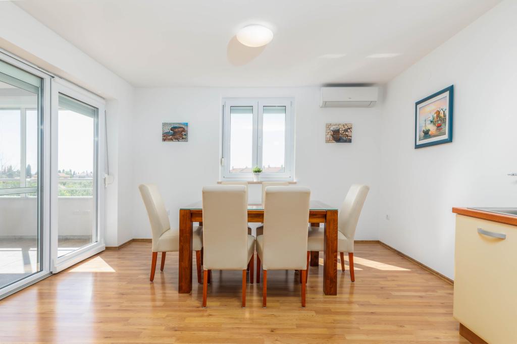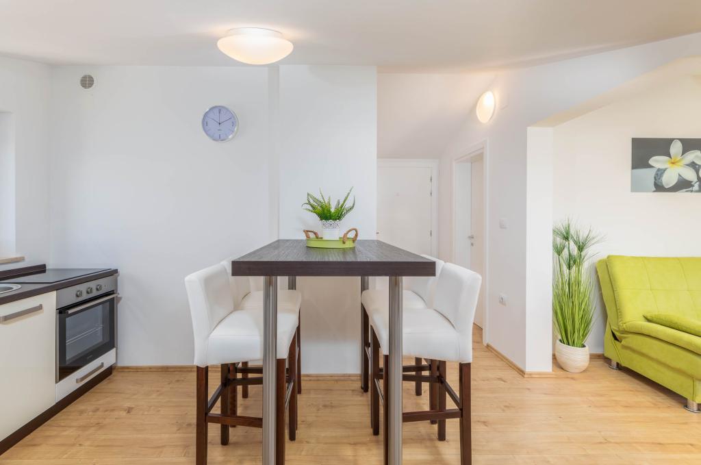 Nagyszerű lakás, nagyon jól felszerelt, csendes, nyugodt. Gyönyörű kilátás az erkélyről, idilli környezet. Nagyon kényelmes 10 perces sétára a strandtól. Ott igazán megpihenhetsz.