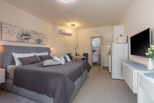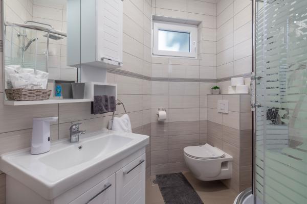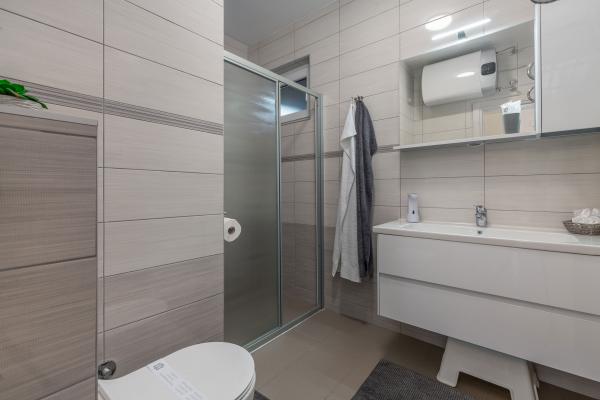 Lakossági adót az az ár tartalmazza.The kitchen is fully equipped with all accessories, dishwasher, 2-pane glass ceramic plate, freezer and fridge. Each apartment has a table and chairs for dining inside and on the terrace. We are very proud to offer beds of very large dimensions of 190x210 with extra quality mattresses and quality bedding, USB charging sockets are next to the bed. Lights have ability to change color and have bluetooth speaker for listening music from mobile phone. Great WI-FI and big screen Android TV with variety of programs from Internet or satelite TV and free Netflix service. Each apartment has a make-up table and chair, but it can be used as a work desk. The bathrooms are equipped with floor mats, towels, toilet paper, hair dryer and First aid box.