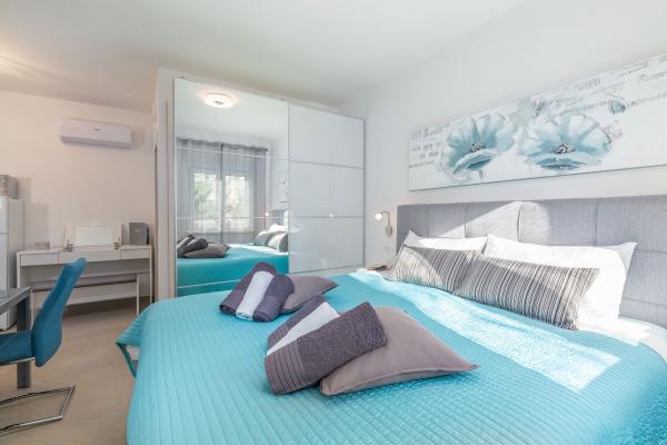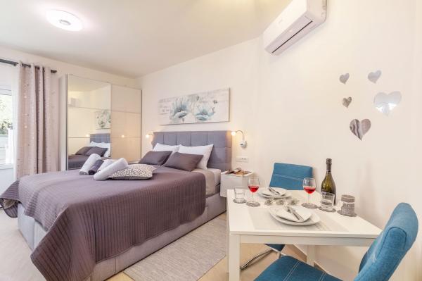 eVita Premium Studio apartments are reconstructed in July 2018. It is ground floor house with 4 modern, fully equipped studios for 2. The beach is only 4 minutes walk through the woods and the center of Fažana is 10 minutes walk. Restaurant is 3 minutes walk and bus station is across the street. Come and enjoy this premium studio apartments for 2 :) In the yard there is barbecue for shared use and laundry room for washing and ironing with 2 washing machines, iron with ironing table, washing liquids, fire extinguisher. Inside can be parked 4 cars, each apartment has its own parking place. We hope you will recognize our effort in design of this concept and choose our apartment for you next holiday :) Guests have their own apartment with private entrance and terrace with table and chairs, a sunshade and 2 deck chairs with a side table. Private parking is inside the locked gate and all guests receive keys that open automatic gate, key for pedestrian gate, laundry room and key of ap.