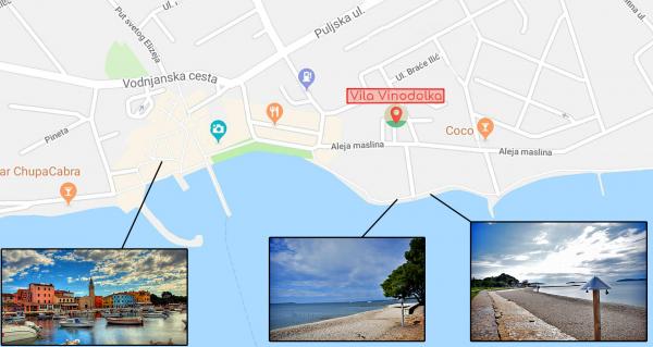 A Villa Vinodolka egy ház, amely Fažana csendes részén, a tengerparttól az első sorban található. A tenger 2 perc sétára, a központ pedig 5 perc sétára található. A legközelebbi bevásárlóközpont 5 perc sétára található az apartmantól. A közelben található a gyönyörű Brijuni Nemzeti Park (5 perc sétára a hajótól) és Pula városa, amely autóval 15 percre található.