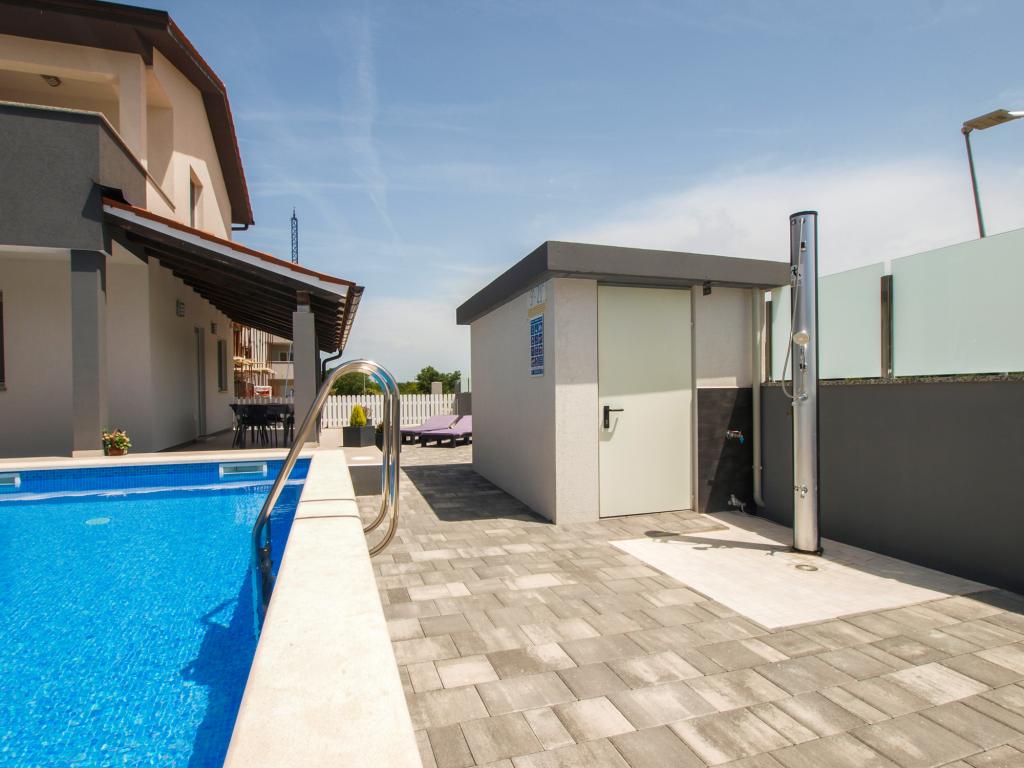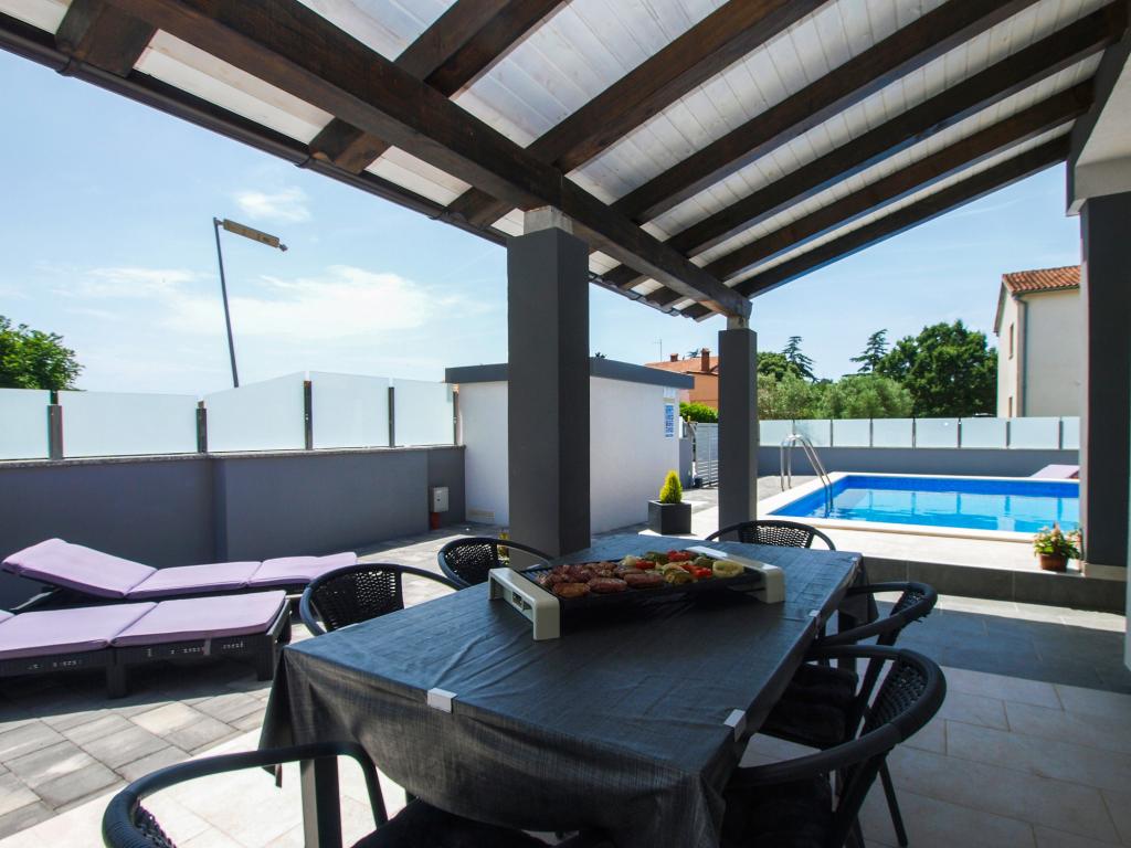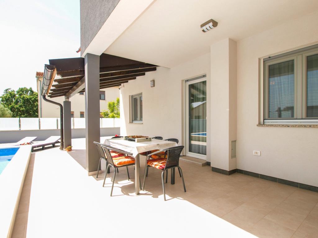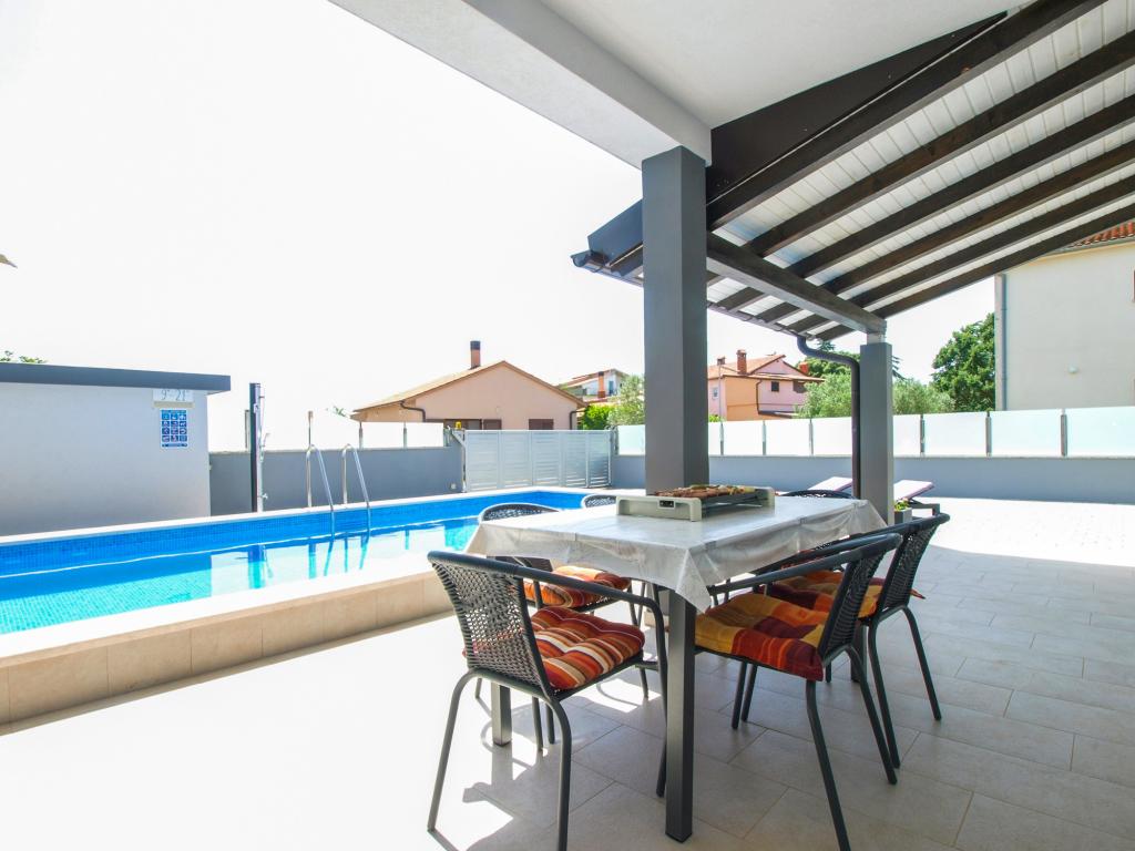 modern apartmanok, 65m2, terasz25 m2, uszoda az udvarban, ingyenes parkolás az objektumon belül, ingyenes internet minden új és modern, távolság a strandtól kb. 1000m, távolság Fažana2500m-től Pula 3000m-től a Brijuni-szigetektől cca4000m. Az apartmanok egy családi villa részét képezik, ideális családi vakációhoz