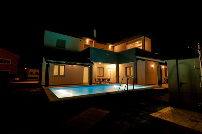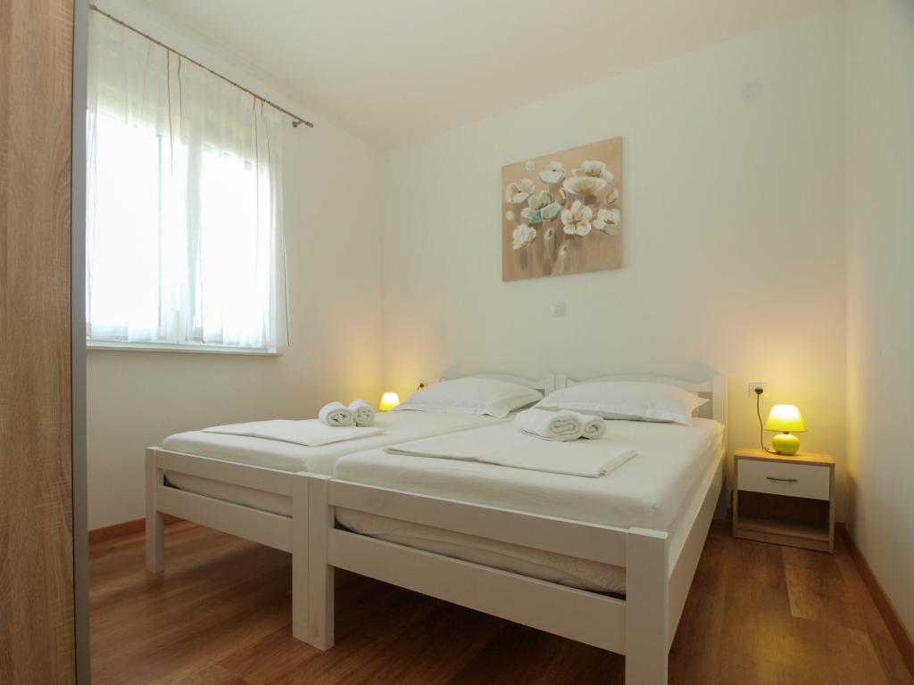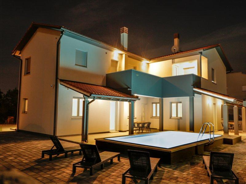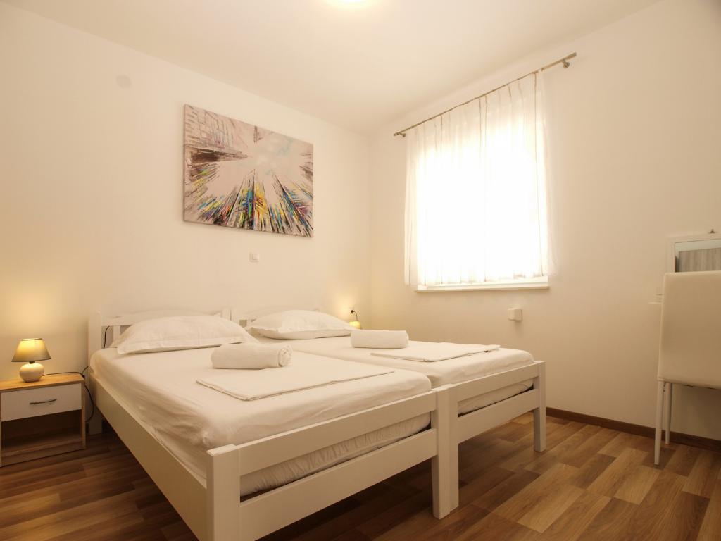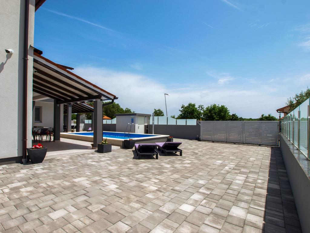 modern apartmanok, 65m2, terasz25 m2, uszoda az udvarban, ingyenes parkolás az objektumon belül, ingyenes internet minden új és modern, távolság a strandtól kb. 1000m, távolság Fažana2500m-től Pula 3000m-től a Brijuni-szigetektől cca4000m. Az apartmanok egy családi villa részét képezik, ideális családi vakációhoz