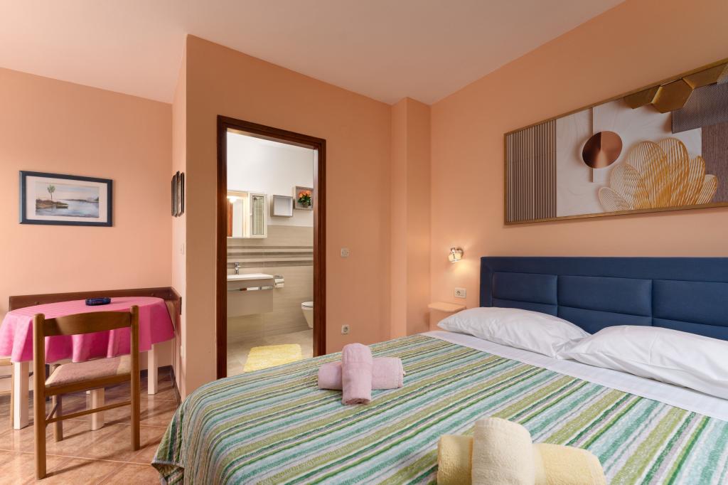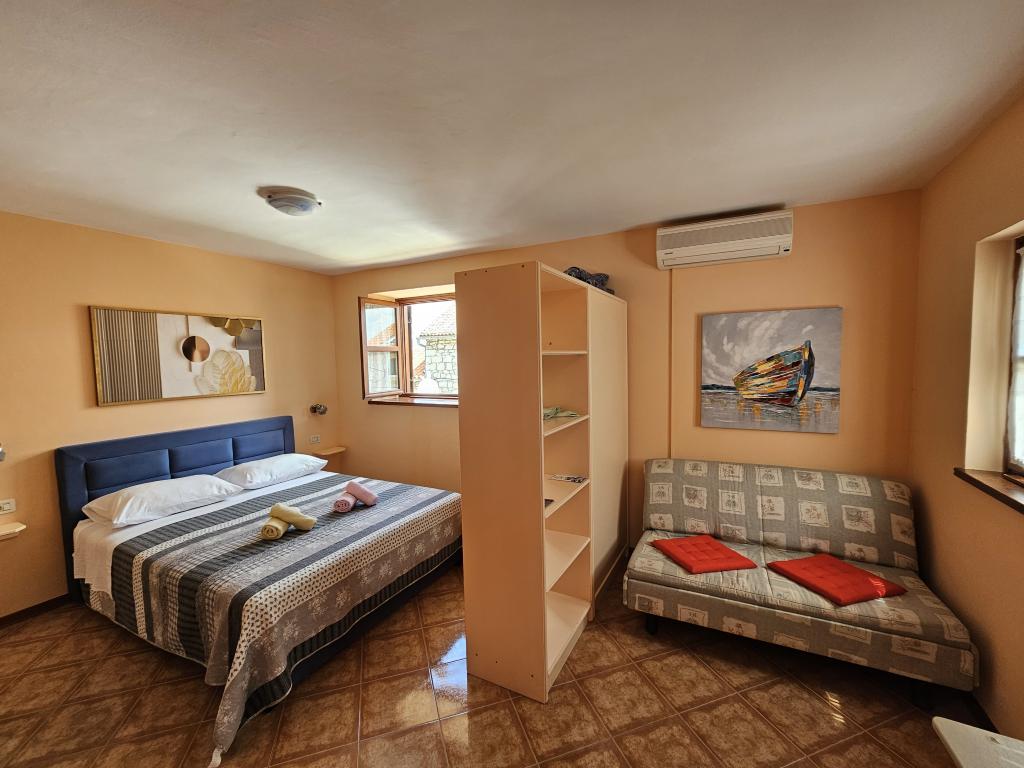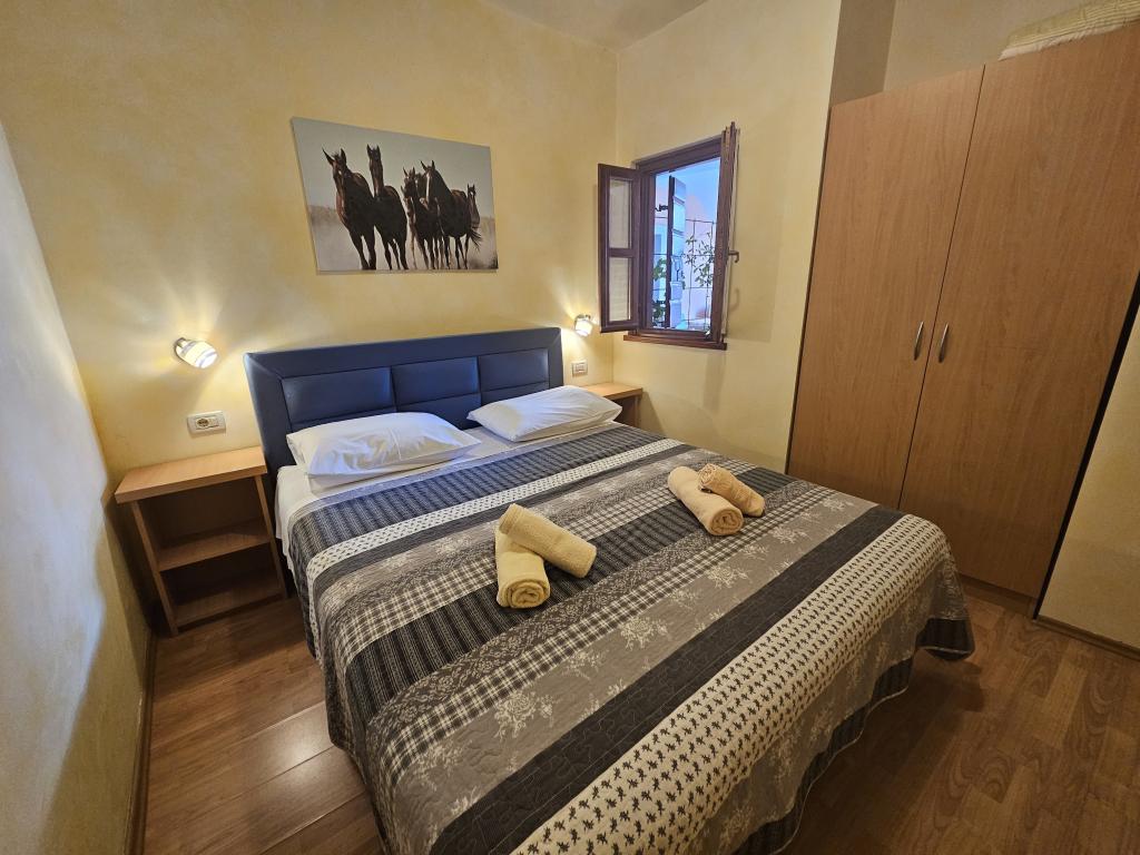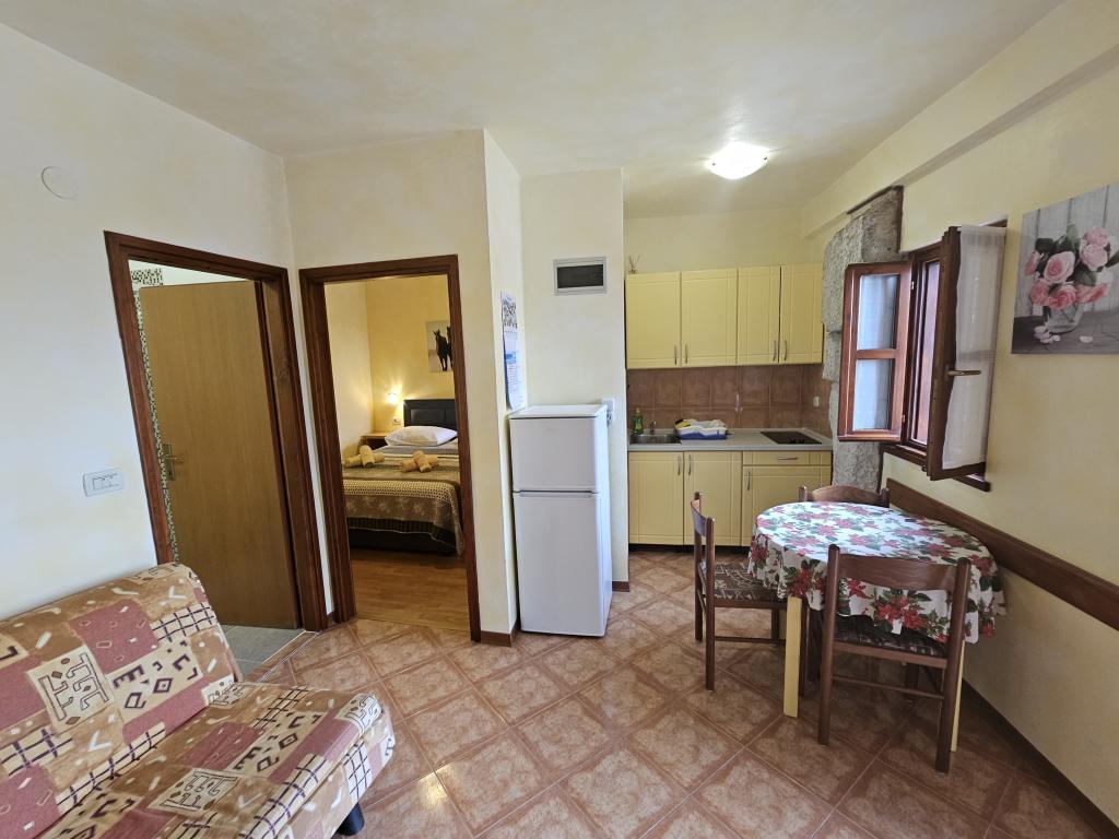 Funtana óvárosának központjában egy kőházat újítottak fel kis családi apartmanokkal. Minden apartman mini konyhával rendelkezik a szükséges készlettel (edények, kávéfőző ... =, fürdőszoba WC-vel (törölközők ...), hálószoba (minden szükséges ágynemű), nappali (harmadik ággyá alakítható kanapé, TV) SAT, WIFI, légkondicionáló) és egy terasz. A posta, a kisbolt, az éttermek és más turisztikai létesítmények csak 100 méterre találhatók. A strand minden szükséges felszereltséggel az APP 300 méterre található.