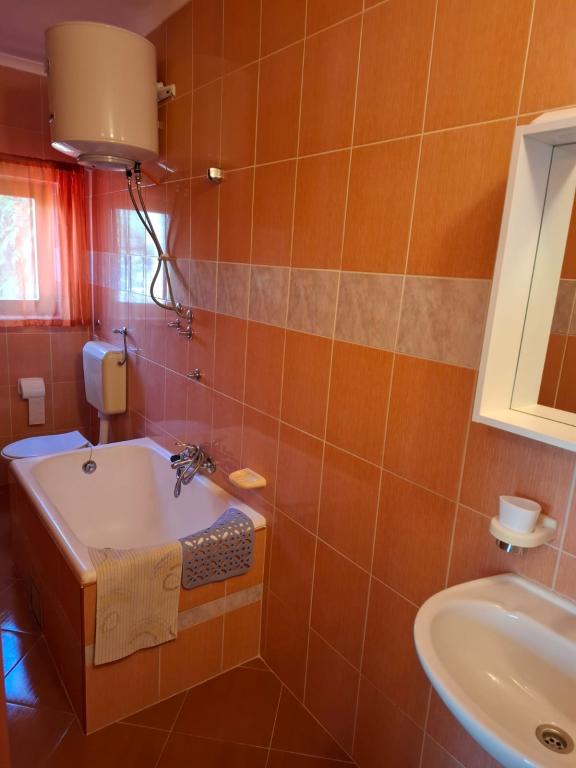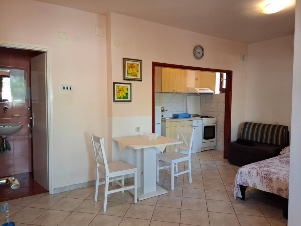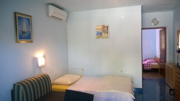 Újonnan felújított ház, két apartman, parkosított udvar, kert, növényzettel teli kert, parkolóhely az udvarban. Az apartman mérete 40 négyzetméter. m. terasza 20 négyzetméter, minden apartman külön bejárattal és külön fedett terasszal rendelkezik, kilátással a tengerre, a Velebitre, a kertre és az utcára, Kék apartman: nappali, hálószoba. konyha a nappaliban, fürdőszoba WC-vel. Nappali szoba: franciaágy, plusz pótágy. Konyha, - teljesen felszerelt. Hálószoba, - két egyszemélyes ággyal rendelkezik Dunja: nappali, - franciaágy, plusz pótágy; Konyha, - teljesen felszerelt képernyővel elválasztva; Hálószoba, - franciaágy két fő részére. Mindkét apartman külön kültéri zuhannyal, közös grillezővel, légkondicionálóval és korlátlan internettel rendelkezik az ár részeként.