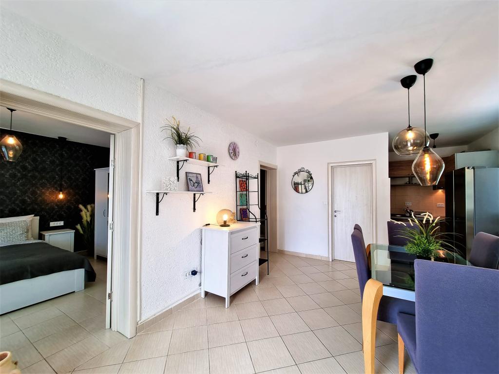 Stúdió apartmanban szálltunk meg, nagyon szépen berendezett, minden megvolt, amire szükségünk volt. Este romantikus hangulat világítással az udvaron. Az udvartól a tengerig és a korlátlan úszásig... A házigazdák nagyon kedvesek. Szép és békés nyaralás volt!!
