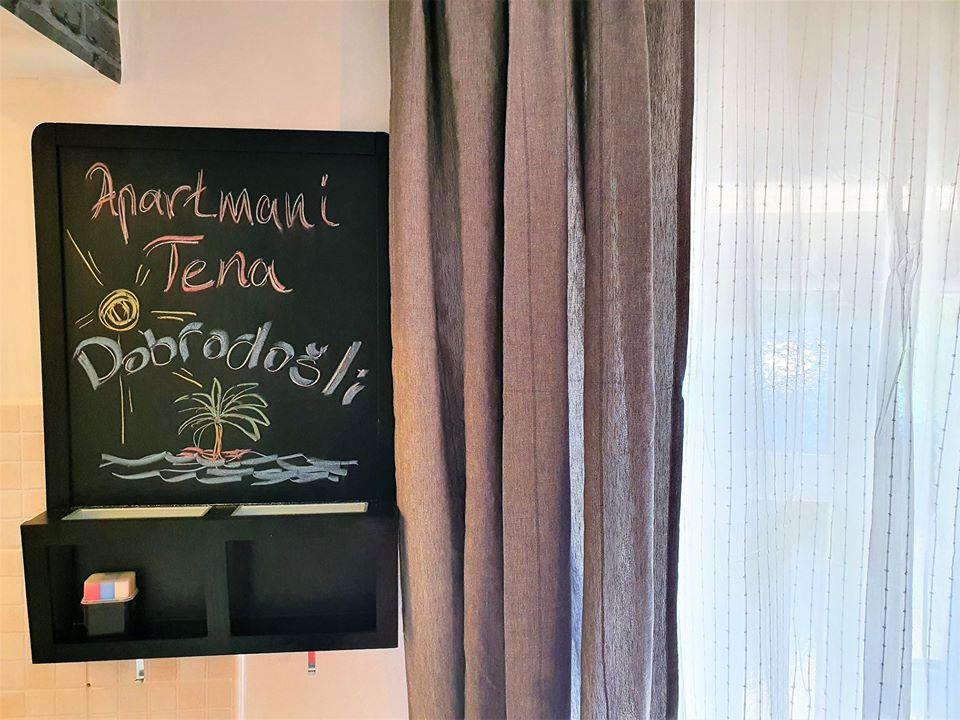 A Tena apartmanok a sétány szélén találhatók, az első sorban a tenger felé. A parkosított udvar közvetlenül a strandra vezet, a tenger 10 m-re van. Távolság üzletektől vagy éttermektől 20 m. Tágas udvar, grillező és parkoló áll a létesítmény vendégei rendelkezésére. Minden létesítményhez megfelelő kerti bútorok tartoznak, amelyek a nap legmelegebb részében pihenést és élvezetet biztosítanak. Az épület befogadóképessége 2 apartman, az első az épület földszintjén található, 22 m2-es, apartmanonként maximum 2 fő, a második pedig az emeleten található, amely maximum 6 fő elszállásolására alkalmas. lakásonként. Minden apartmanban kényelmes franciaágyak, konyha, valamint egy klasszikus háromszemélyes kanapé található, amely szükség esetén kényelmesen pótággyá alakítható. Minden apartman légkondicionált, WI-FI internettel, TV-vel felszerelt. Minden apartmanhoz zuhanyzós fürdőszoba tartozik. A Crna Punta a Karin-öbölben található, 5 percre Karintól és 40 km-re Zadar városától.