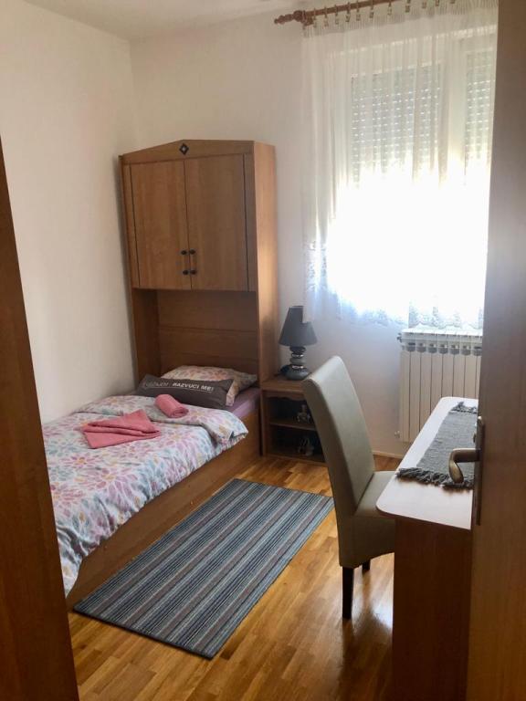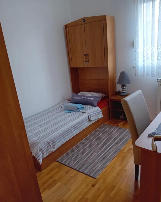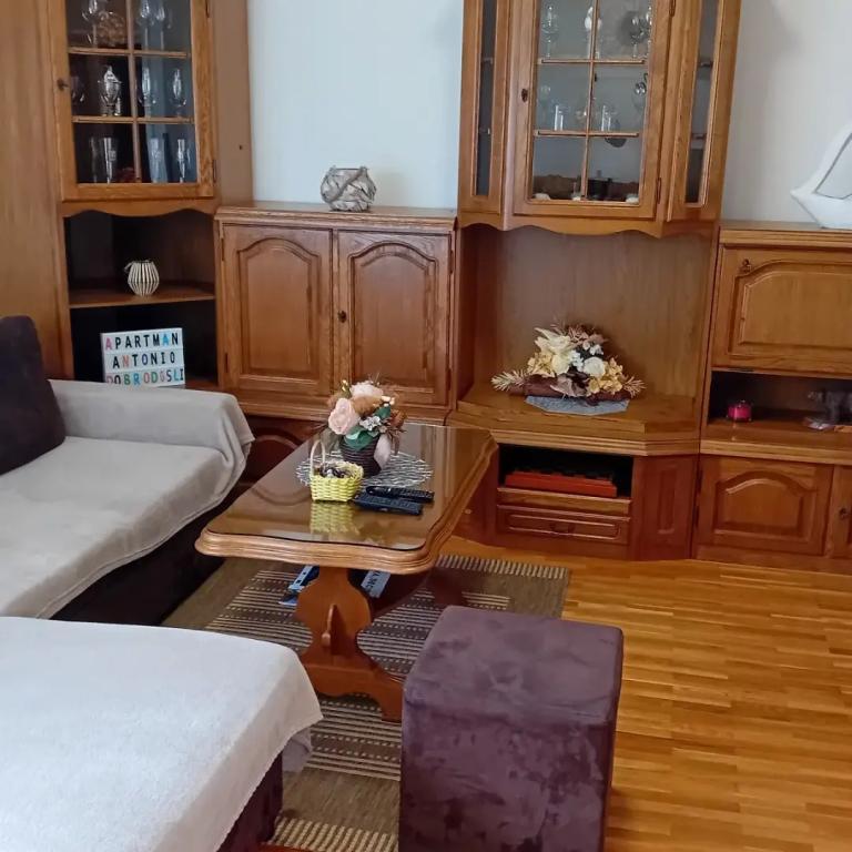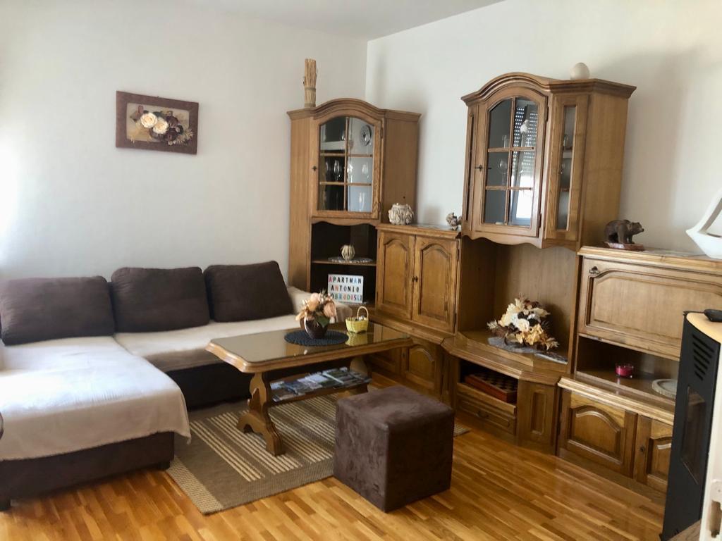 Apartman Antonio egy teljesen felszerelt kétszintes apartman.Az apartmanban 5 ágyas.Az apartmanban:1 nagy franciaágy,1 ágy 1 fő részére és egy további kihúzható ágy 2 fő részére.Az apartmanban 2db hordozható klíma található. Az apartman a központtól 150 méterre található, a téren, egy gyönyörű csendes utcában. Könnyen megközelíthető minden üzlet, étterem, gyorsétterem, kávézók, gyógyszertárak, sportcsarnok, piactér.A lakáshoz saját, elektromos rámpával védett parkoló tartozik.