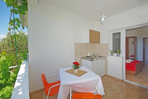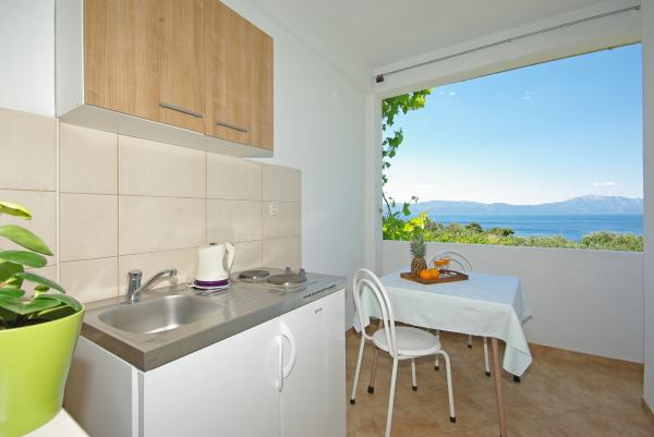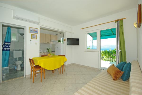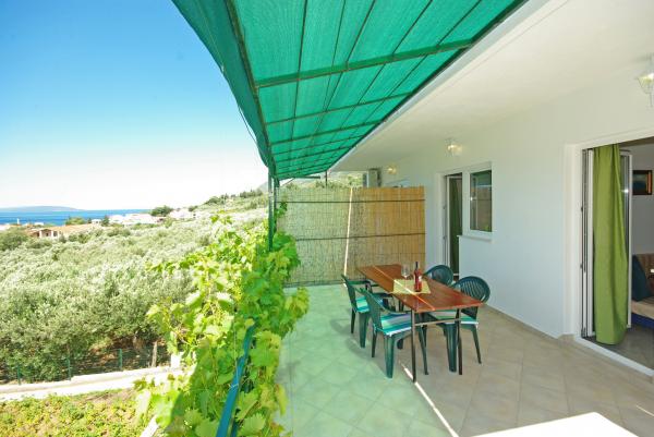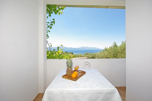A házban található a vidéken, és olajfák, csendes környezetben mintegy 500 méterre, illetve 15 méterre a tengertől. A ház egy gyönyörű kilátás nyílik a tengerre és a hegy lejtőjén.