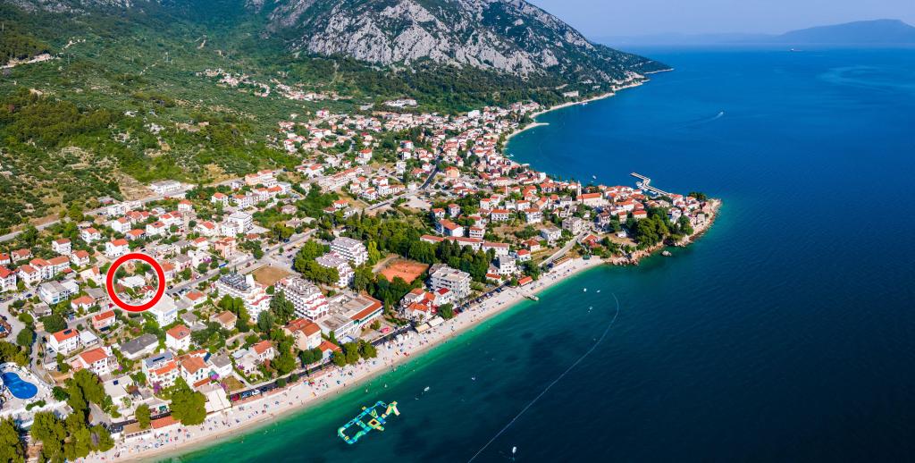 A létesítmény Gradac csendes részén található; a strandtól kb. 100 m-re, a városközponttól kb. 400 m-re van.Egyik kényelem, hogy a ház mellett bolt és pékség, a tengerparton éttermek és kávézók egész sora található. A gyönyörű, mintegy 3 km hosszú strandon különféle rekreációs, sport- és szórakozási lehetőségek, valamint játszóterek várják a gyerekeket (vízipark, minigolf, teniszpálya, vízibicikli, vízirobogó és kerékpárkölcsönzés). A létesítményben egy 4 fős apartman és egy kisebb 2 fős stúdió található, valamint ingyenes parkolási lehetőség a vendégek számára. A szállásegységek teljesen felszereltek minden szükséges felszereléssel, beleértve a TV-t, a Wi-Fi internet-hozzáférést és a légkondicionálást, amelyeket a szállás ára tartalmaz.