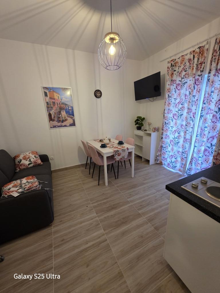 Augusztusban az Ariana apartmanban szálltunk meg, kellemesen meglepett minket a mosógép és a légkondi mindkét szobában. Az erkély kényelmes és fedett, a kilátás a tengerre élvezet, nincs forgalom, az üzlet 100 méterre sincs. Minden szuper tiszta és illatos volt, frissen mosott ágynemű. Kaptunk még mosogatószert, szivacsot, konyharuhát, sampont, szappant. Gyakran jártunk a Marmont pizzériába, a ház közelében, a tengerparton, nagyszerű. A háziasszony udvariasan és feltűnés nélkül fogadott minket, ami megfelel nekünk.