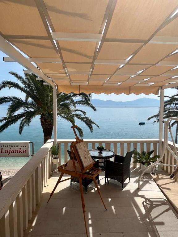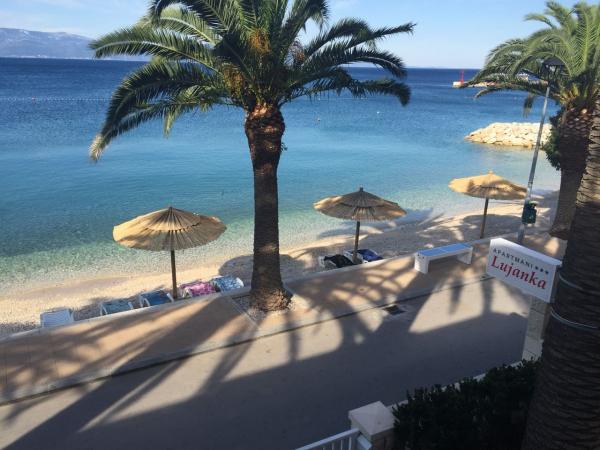 Mindenkinek meleg szívvel ajánljuk a kényelmes, Lujanka apartmant. Már harmadik alkalommal töltjük itt a nyári pihenést, és ha lehetőségünk lesz jövőre ismét visszatérünk. Szuper, megunhatatlan szállás!. Kedves, segítőkész,figyelmes házigazdák gondoskodnak a vendégek kényelméről.A parton kényelmes napozóágyak állanak a vendégek rendelkezésére. Folyamatosan gondoskodnak friss illatos törölközők , ágyneműk cseréjéről. A teraszról csodálatos kilátás nyílik a tengerre.A pálmafák árnyékéban kellemes a hűsölés.Abszolút központi helyen van.az apartman. Üzlet, pékség ,posta a éttermek, kávézók, a szomszédban a sétáló utcában vannak.Az elmúlt több mint 20 évben sok helyen nyaraltunk már az Adrián,de nekünk ez a hely és szállás lett a kedvencünk! Számunka ez a legideálisabb , legkényelmesebb hely az éves fáradalmak kipihenésére. Mindenkinek szívből ajánljuk!