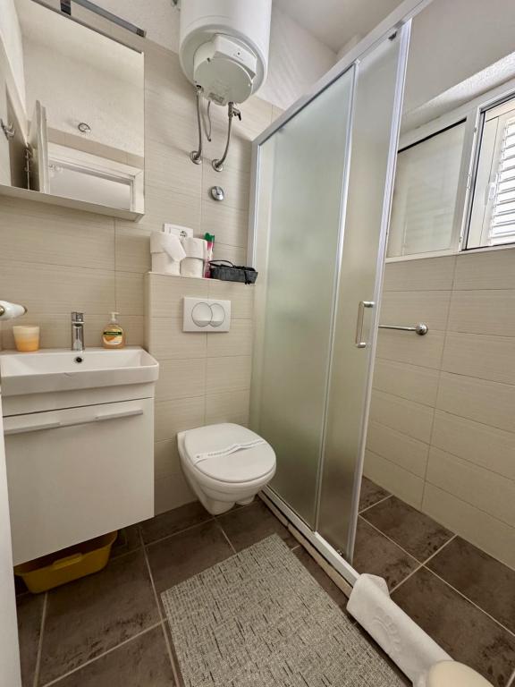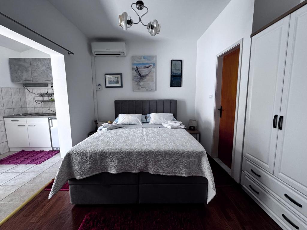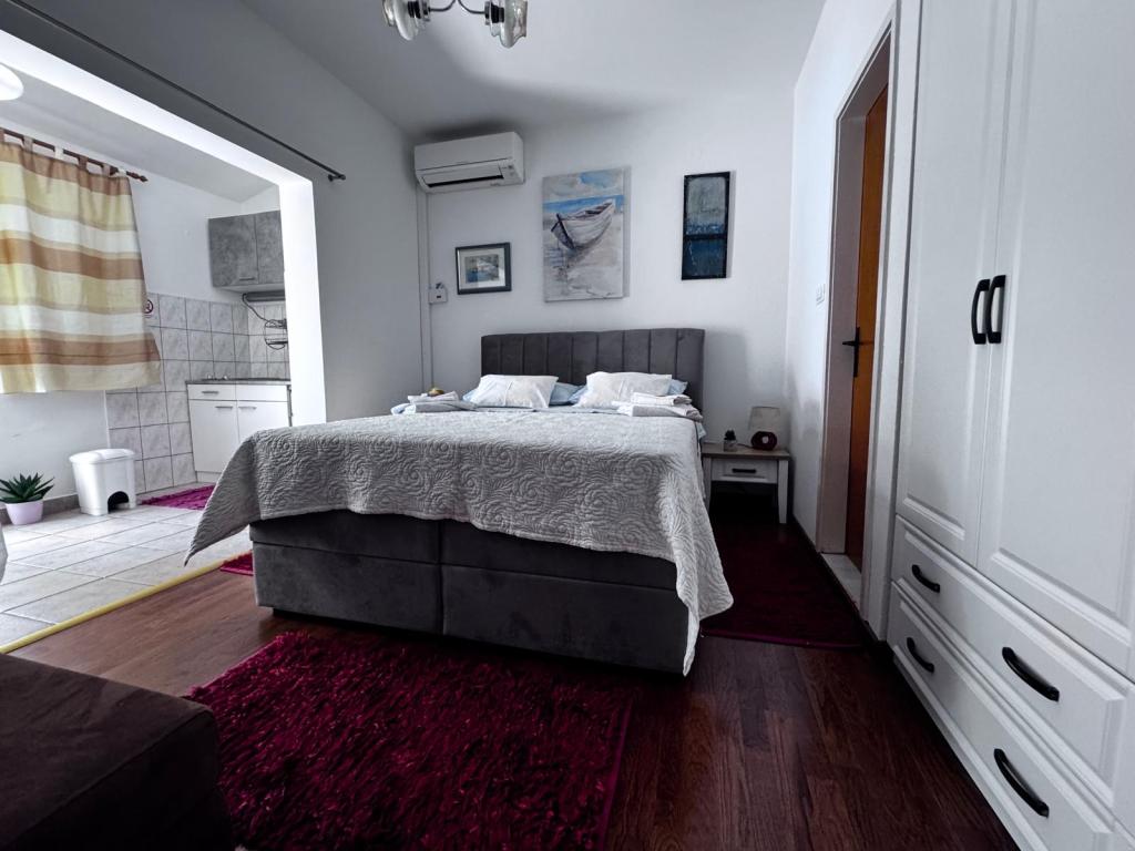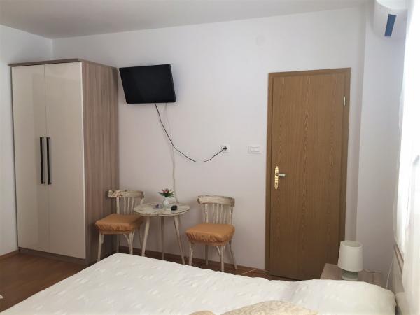 Őszintén ajánlom ezt a helyet gyermekes családoknak, pároknak vagy időseknek, a lakás minden elvárásnak megfelelt, tiszta, kényelmes ágyak, mosógép, teljesen felszerelt 4 égős konyha, klíma csak napi 10 órában, de elég, mosógép, kenyérpirító, nagy hűtőszekrény, csendes hely és gyönyörű kilátás, az épület egzotikus elhelyezkedése gyönyörű pálmafák mellett, a tenger és a strand közelsége, amely tiszta és nem túlzsúfolt volt - ez egy reveláció volt, és napozóágyak ill. az üdülés árában szereplő esernyők valóban ritkák. Mellette van Sudenac és egy kebab-sült krumpli, az épületből kilépve a tenger és a sétány mentén mindenhol kocsma, mellette egy pékség is található, Leo és Anita tulajdonosok pedig gondoskodnak arról, hogy minden jó legyen a vendégeknek. . Még amikor egész napos kiránduláson voltunk, a ruhaneműnket még a vihar előtt levettük, hogy ne legyen vizes, ami nagyon jól esett, mindenkinek ajánlom ezt a helyet, aki karnyújtásnyira szeretné a tengert, a jó ár és nem túl zsúfolt. A sík terület babakocsival és gyerekekkel való sétáláshoz szintén nagy előny