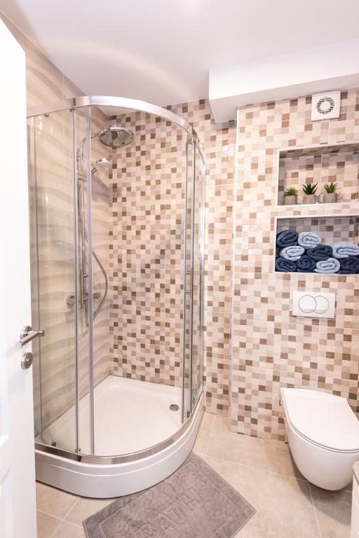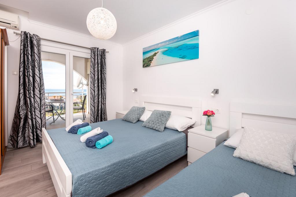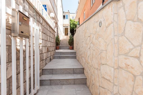 Az apartmanok a város központi részén találhatók, amelyek mindössze 200 m-re vannak a strandtól és a központtól és egyéb létesítményektől, amelyek egy vonzó nyaraláshoz szükségesek. A part mentén öt kilométer hosszú túraútvonal húzódik a gyaloglás és kerékpározás kedvelőinek. Az épülettől nem messze három salakos teniszpálya áll minden teniszrajongó számára. A házban öt apartman található, mindegyik saját terasszal (10m2), kilátással a tengerre. A 3-as, 4-es és 5-ös apartmanokban két hálószoba és egy parkolóhely található a garázsban, melyet az ár tartalmazza. Barátságos házigazdák fogadják majd.