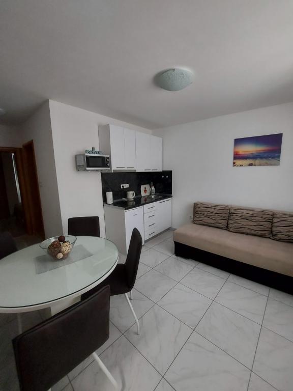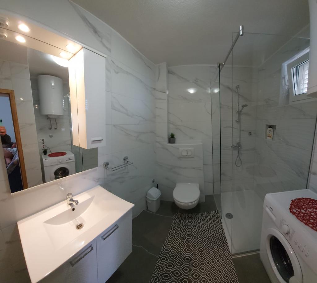 2022 júliusában az apartman vendégei voltunk. Ideális hely azoknak, akik viszonylag csendes helyet keresnek a kikapcsolódásra. A tulajdonosok nagyon kedvesek, nem zavarják a tartózkodást, de mindig segítőkészek és finom italokkal kínálják termékeiket. Lakás, A lakás tiszta, az egyetlen hátránya, hogy a 2 + 2 lakásban kevés a hely a személyes tárgyaknak (szűk gardrób néhány polccal) és egy nagyon szűk erkély. Nagyon jó elhelyezkedés, közel a strandhoz és éttermekhez, pékséghez és bolthoz, ajánlom ezt az apartmant.