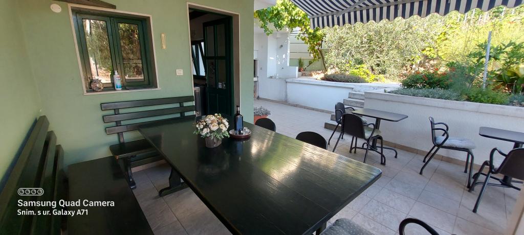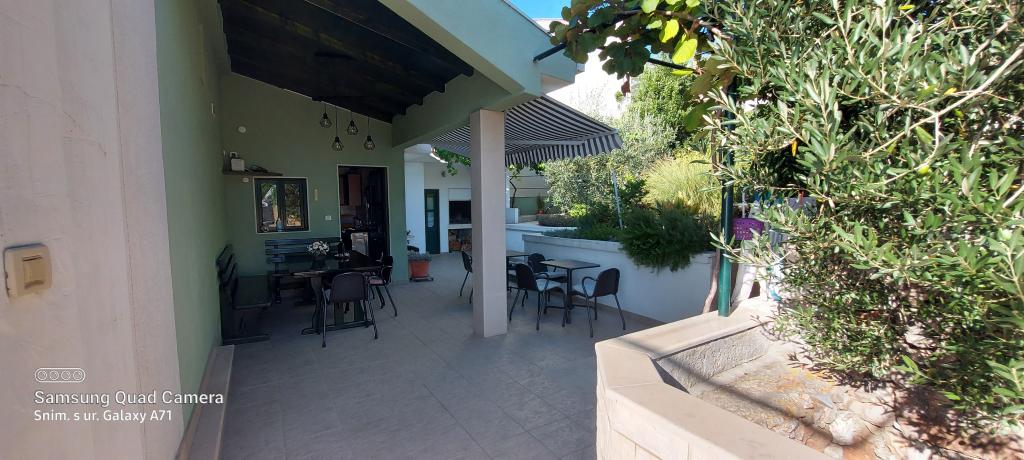 A ház egy csendes öbölben található, az első sorban a tenger felé, közel a sport- és szórakozási lehetőségekhez (teniszpálya, minigolf, vízi park, vízi robogók, vízibiciklik, kerékpárok kölcsönzése). A kertben szőlő, kivi, olajbogyó és citrom, valamint virágok és gyógynövények állnak a vendégek rendelkezésére. A kertben 50 m2-es terasz pergolával, grillsütő és kültéri zuhanyzó található. Ugyanazon az emeleten található 3 szoba saját fürdőszobával, klímával, terasszal, szobahűtővel és széffel (2 db kétágyas és 1 db háromágyas. Pótágyazható). A ház udvarán található egy teljesen felszerelt konyha két nagy hűtővel, fagyasztóval, tűzhellyel sütővel, mikrohullámú sütővel, 2 vízforralóval, kenyérpirítóval, filteres kávéfőzővel és egyéb szükséges tartozékokkal. A ház előtt van egy nyitott parkoló, valamint van saját parkolónk az árnyékban, mely zárt és fedett. Háziállatok megengedettek.