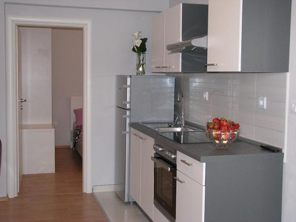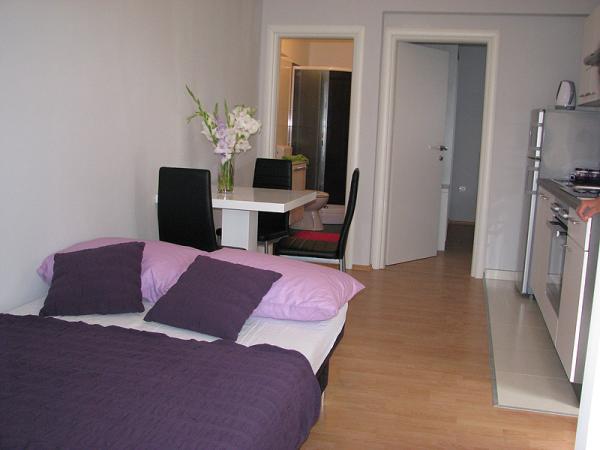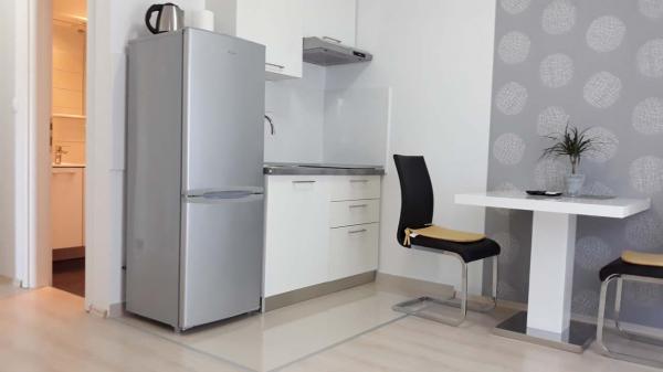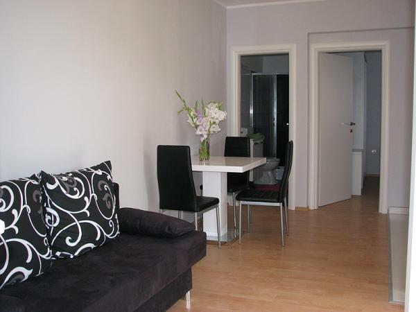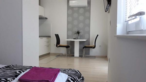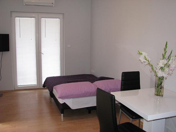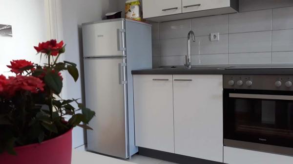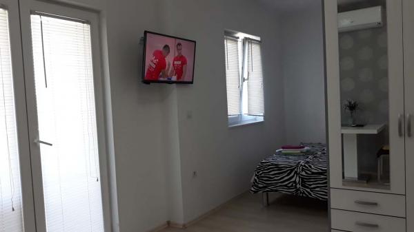 Igényesen berendezett apartman található, egy csendes helyen, ami kényelmes, hogy bárki, aki szeretne egy jó pihenést. Ez alatt található a főúton, és nincs zaj, a béke, a nyugalom és a friss tengeri levegőt. A hölgy, aki fogadott minket nagyon hasznos volt, és barátságos, és mi csak dicsérni.