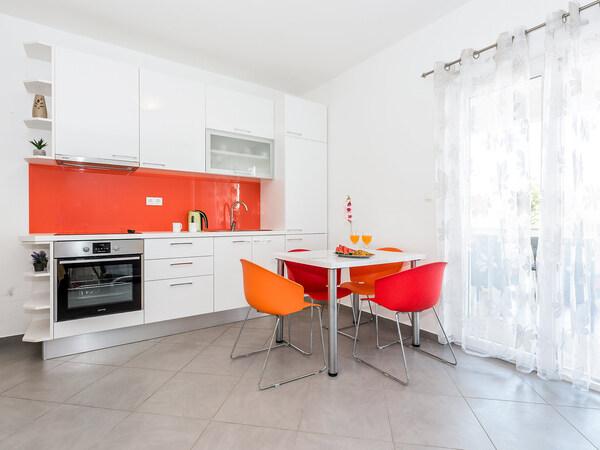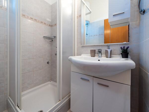Ez volt az első alkalom ezen a területen, és nagyon kellemes meglepetés ért minket. A lakás tiszta volt, és a kis négyzetméterek miatt minden szükséges dolog megvolt. A kilátás a teraszról teljesen csodálatos. Privát strand két nyugágyakkal. A móló, amiről folyamatosan leugrottunk. A tenger kristálytiszta. A tulajdonos és a többi családtag nagyon barátságos és segítőkész. Biztosan visszatérünk.