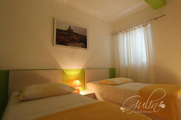 Az Apartments Gulin Sparadici központjában található, a Primosten-riviérán. Fenyőerdő veszi körül, mindössze 20 méterre a tengertől. Ideális választást kínálnak a béke és a pihenés számára tömeg nélkül. A Gulin apartmanok öt apartmant kínálnak, összesen 22 ággyal. A vendégek rendelkezésére áll két két hálószobás apartman 4 1 ággyal és három egy hálószobás apartman 2 2 ággyal. Minden apartman forróvizes fürdőszobával, légkondicionálóval, műholdas TV-vel és internettel felszerelt. Minden vendég biztonságos parkolást biztosít a lakás elõtt és közös kültéri grill használatát. A vendégek élvezhetik a strand elõtt a tengerpartot, vagy a közeli beton-, sziklás- vagy kavicsos strandokat.