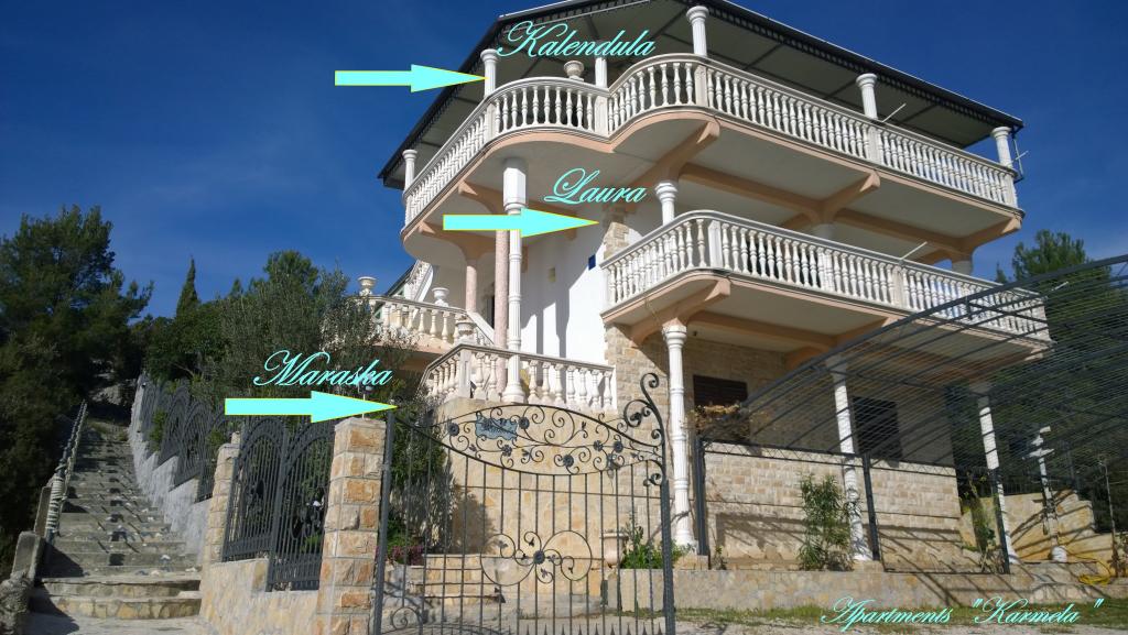 Üdvözöljük az Apartments Karmela-ban! A ház Grebaštica csendes részén található, mediterrán kertekkel körülvéve, míg az öböl túloldalán egy sűrű fenyőerdő található - ideális hely a városi nyüzsgés elől. Mindhárom apartmanunkban eltölthet egy pihentető nyaralást családjával, gyermekeivel és barátaival. A kristálytiszta tenger mindössze 30 m-re, míg a helyi kavicsos strandok 100-300 m-re találhatók a háztól. Grebaštica látnivalói mellett (Bedem védőfal, Szt. Péter és Mária templom, Kanel forrása) nagyon jó földrajzi fekvésű, így tartózkodása alatt lehetősége nyílik számos közeli természeti látnivaló, szigetecske és történelmi látnivaló meglátogatására. látnivalók, mint például: Primošten (15 perc), Šibenik (20 perc), Knin és Split (1 óra), Dubrovnik (4 óra), valamint gyönyörű nemzeti parkok: Krka-vízesés (50 perc), Kornati (30 perc a helyig) a hajó indulásától), a Plitvicei-tavak (2, 5 óra)... . Szívesen vendégül látjuk kedvenceit is!