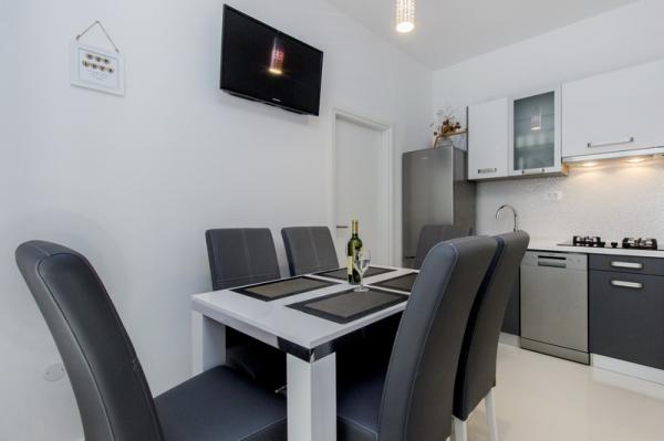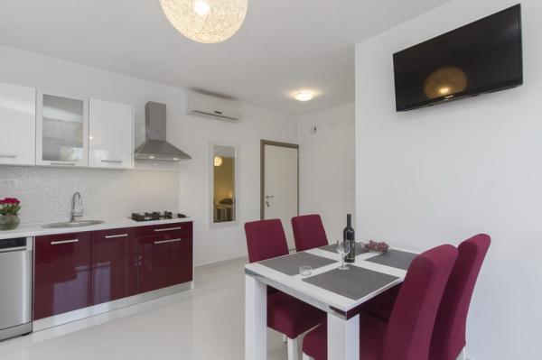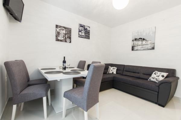 Grebastica, a falu között félúton helyezkedik el Primosten és Sibenik kínálnak kiadó 6 modern, teljesen berendezett apartmanok. A házban található egy csendes helyen, egy ritkán állandó ligetben, ezért ideális kisgyermekes családok, mert a rengeteg terep játszani a ház körül. A központ és mi található mintegy 3-4 perc séta. Az étterem nagyon közel van. Kínálatunkban megtalálhatók lakások 4-7 fő. Az apartmanok modern, minden lakás rendelkezik erkéllyel vagy terasszal, légkondicionált és felszerelt, minden szükséges felszerelést és eszközöket. Van wi-fi internet kapcsolat. Kérésre fel gyermekágy. Parkolóhely az autók, kívülről van zuhanyzó, grill ház, asztalitenisz ... Azt szeretném, ha a meleg fogadtatást.