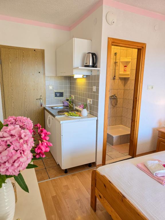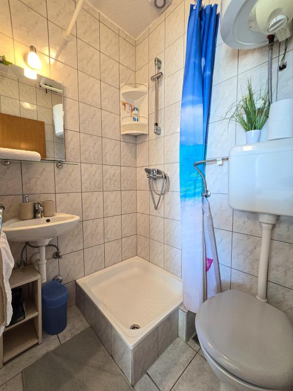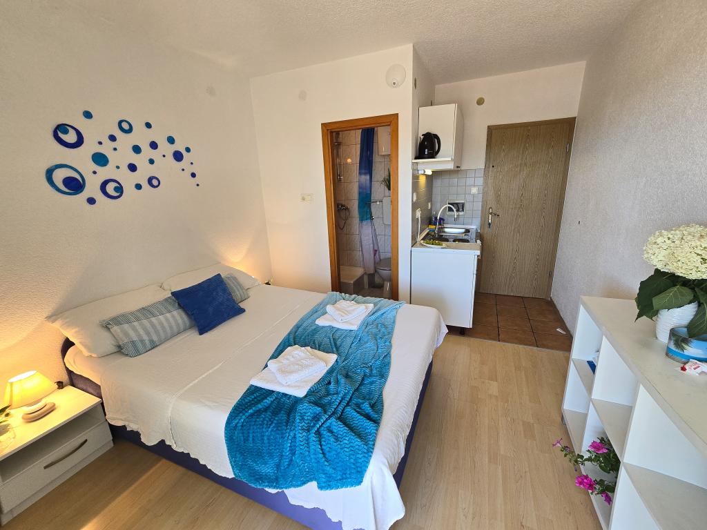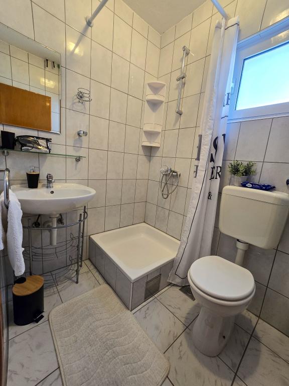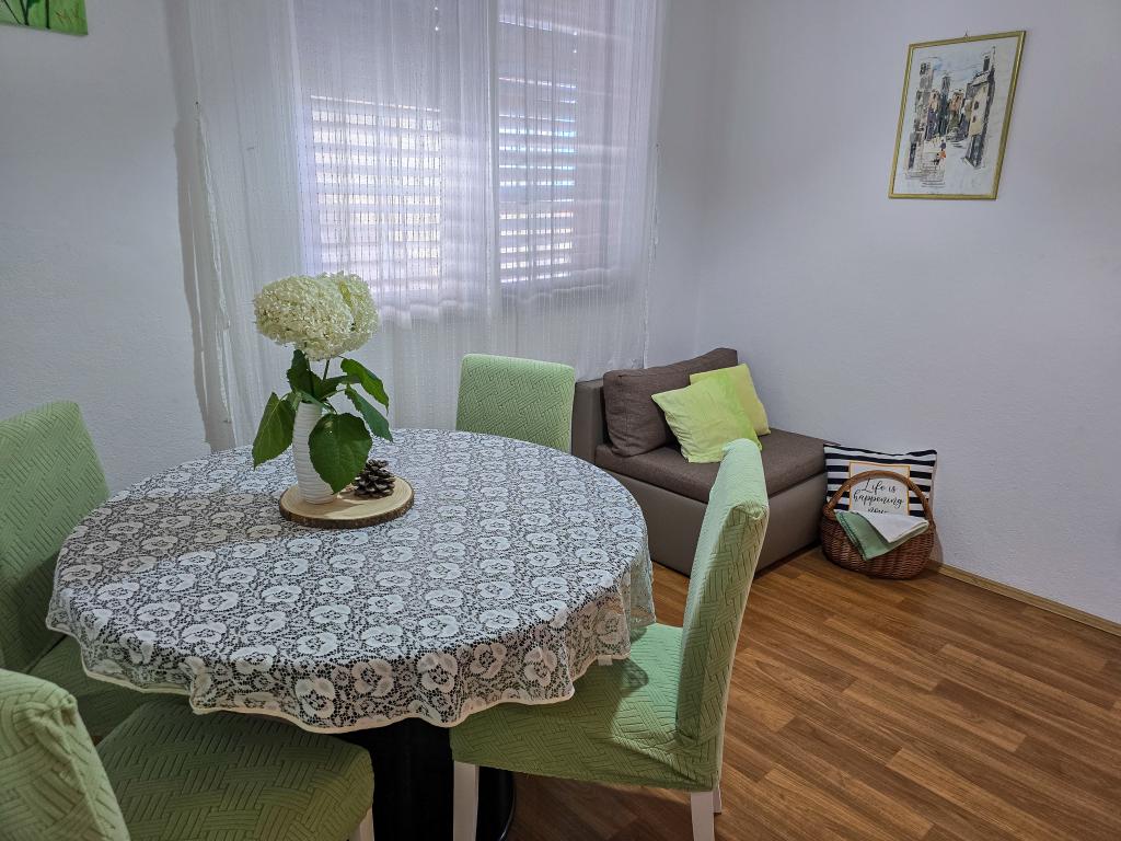 Nagy smjetsaj, szép kilátás az erkélyről, nagyon tiszta lakások; Nagyon barátságos házigazdák, diszkrét, és rendkívül jól megközelíthető minden információt. Csendes területen, parkoló közvetlenül a ház előtt, bolt a közelben, 15 perc séta a központban. Plaza sakkban Pokonji le a szép, tiszta tenger, több étterem, közel az utat a part meredek (nagy képzés), de van egy út körül megközelíthető autóval. Rendkívül elégedett.