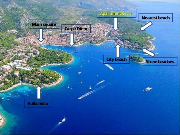 Az újonnan berendezett apartmanok egy családi házban találhatók, Hvar csendes részén, 20 perc sétára az óvárostól. Az A1 (4 fő) az 1. emeleten található, egy nagy terasszal, kilátással a tengerre, és csodálatos naplementét kínál. Az A2 (4 fő) a földszinten egy bekerített udvarban van, előtte ülve. Minden apartmanban egy hálószoba és egy kihúzható ágy található a nappaliban. A parkolás ingyenes, mint a WiFi szolgáltatás. A legközelebbi természetes kavicsos strand az öbölben található, 200 méterre és gyalogosan elérhető. A kavicsos és sziklás második városi strand 10 perces sétával elérhető. A szállás családi nyaralásra alkalmas, gyermekek számára biztonságos (kerítés), 8 fős társaságot várunk. Hvarba katamaránnal érheti el közvetlenül Splitből (1 órás autóútra) vagy komppal (2 órás autóútra) az Óvároson keresztül, ahonnan egy helyi busszal (20 perc autóútra) lehet eljutni Hvar központjába. A legközelebbi repülőtér Splitben található. A katamaránok megy Korcula, Mljet és Dubrovnik.