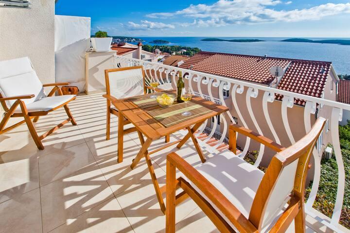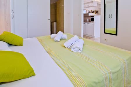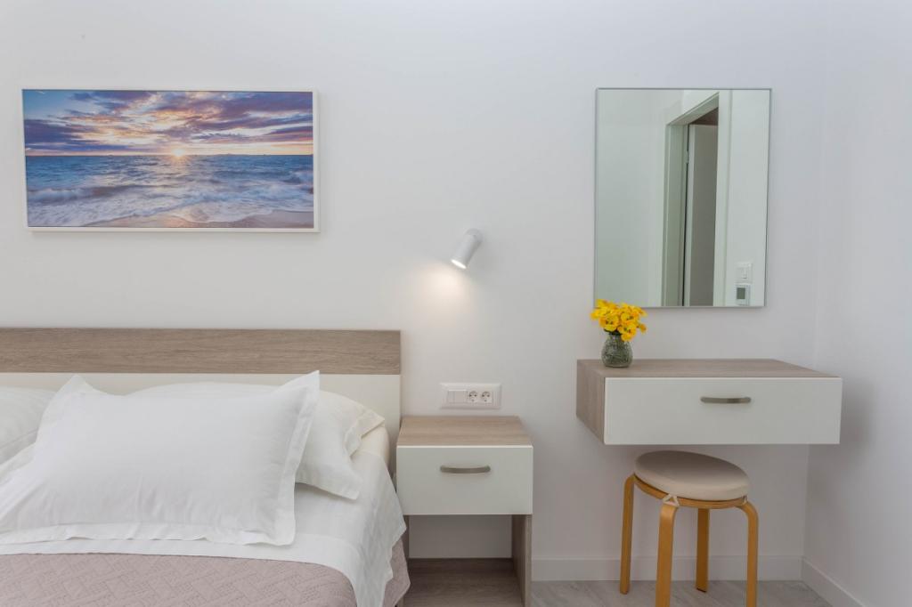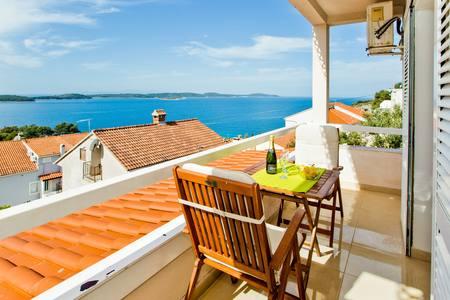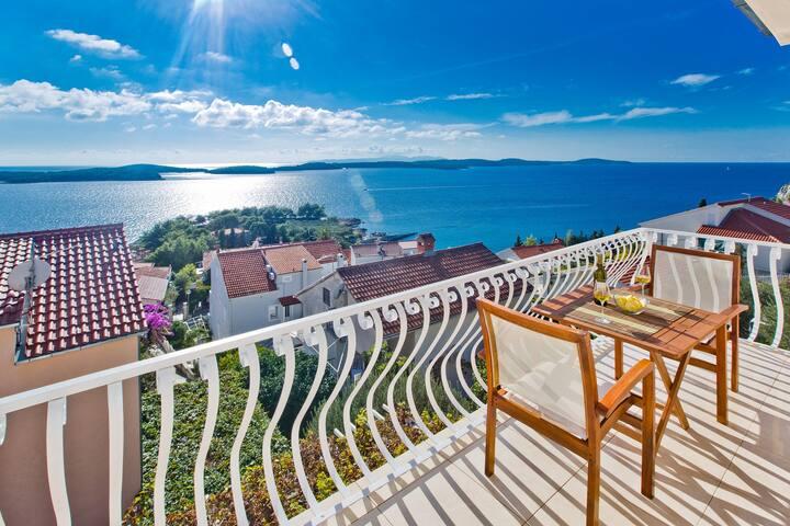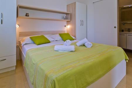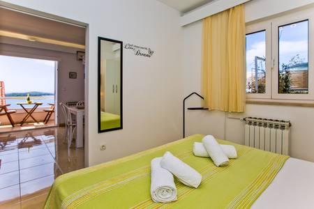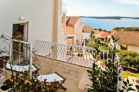 Modern és kortárs Dominis Apartmanok hihetetlen, 180 fokos panorámával, amely lélegzetelállító. Vendégeinknek 4 modern apartmant kínálunk, amelyek minden szükséges felszereléssel rendelkeznek egy kellemes nyaraláshoz. Kék béke apartman 4 csillagos, Kék horizont apartman 4 csillagos, Fehér apartman 4 csillagos és Zöld apartman 3 csillagos. Az apartmanok mosógéppel vagy mosogatógéppel, műholdas televízióval felszereltek, mindegyik légkondicionált és gyors wifi internetkapcsolattal rendelkezik. Vendégeink számára parkolóhelyet és grillsütőt biztosítunk, ahol különféle hal- és húsételeket készíthetnek. Élvezze a napfelkeltét és a naplementét tágas teraszainkról szerettei társaságában, csak a tenger hangját hallgatva, és ha úgy érzi, hogy ki szeretne szakadni a város nyüzsgéséből, egy kellemes séta mindössze 15 perc alatt eljuthat a városközpontba. Forró nyári napokon felfrissülhet a kristálytiszta tengerben a házunktól mindössze 5 perc sétára található strandokon. ÜDVÖZÖLJÜK!!!