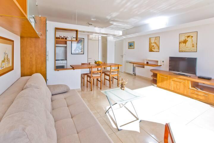 Hét napig maradtunk Tatjana lakásában, és nagyon szerettük! A nagy, saját terasz apartman előtt, grillezővel, amelyet sokat használtunk, nagy fényt vett nyaralásunkra (csodálatos kilátás a tengerre és a szigetekre!) Az apartman maga négy ember számára tökéletes (_és két pár voltunk), minden lehetséges készülékre (mosogatógépre is), és van két fürdőszoba is. Tatjana nagyon kedves hölgy, elkötelezett vállalkozása iránt, nagyon reagál minden kérdésre, és mindig rendelkezésre áll. Láthattuk, hogy nagyon óvatos a részletek iránt. Ezt láthatja a lakás belsőépítészete és apró megérintéseivel, amelyeket hagyott nekünk. Nagyon ajánljuk lakását, és határozottan visszatérünk jövő nyáron !!