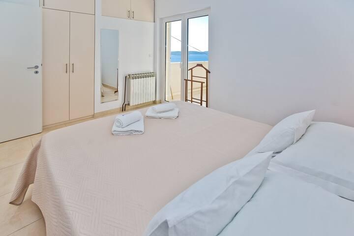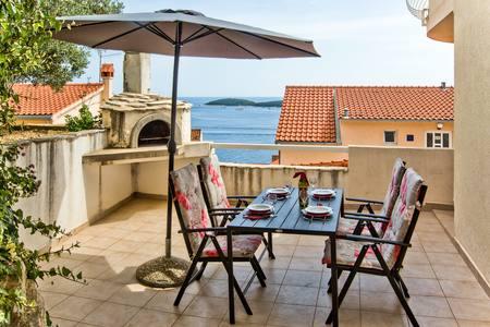 Gyönyörű, tágas apartman, jól felszerelt, nagy terasz grillezővel és gyönyörű kilátással a tengerre. Csendes környék, a háziasszony nagyon kedves és mindig az Ön szolgálatában áll.