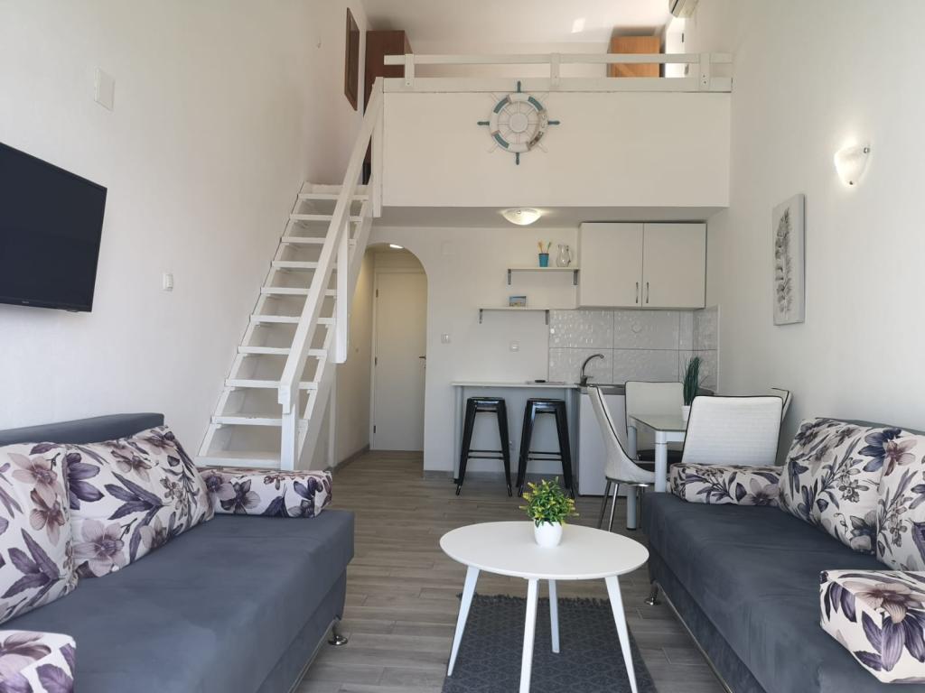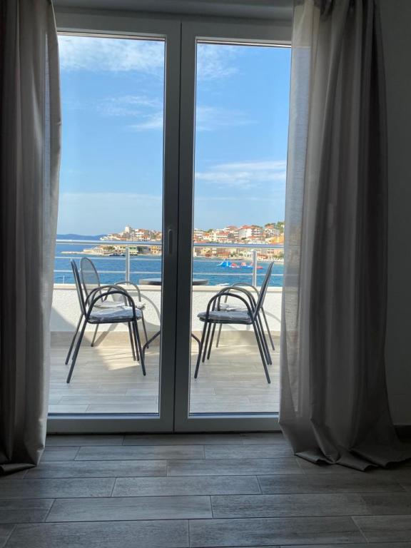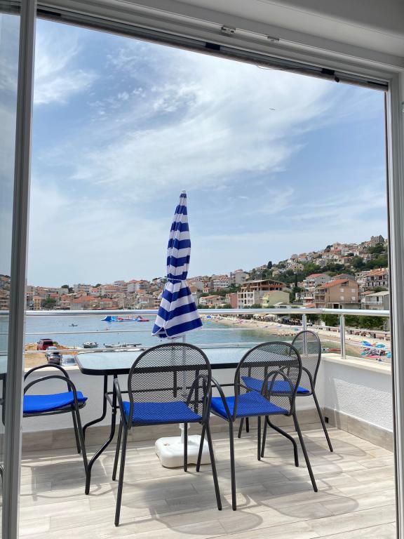 Az apartmanok az első sorban találhatók a tenger mellett, a sétány, a strand mentén. Az erkélyről gyönyörű kilátás nyílik a strandra és egész Igrane városára.