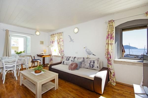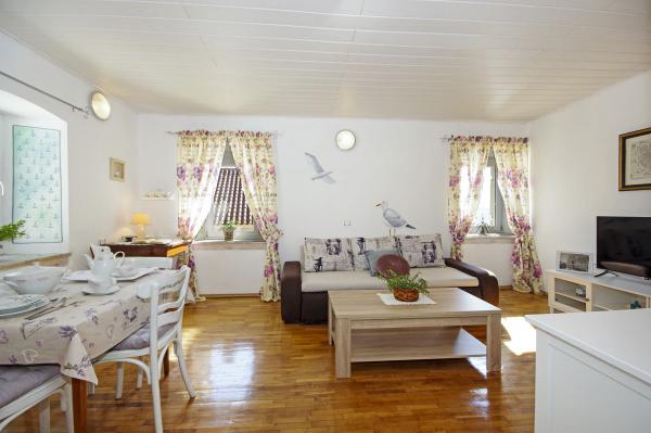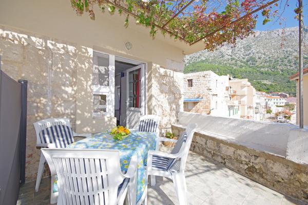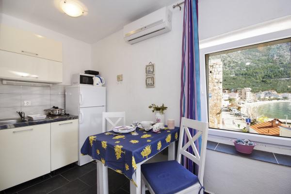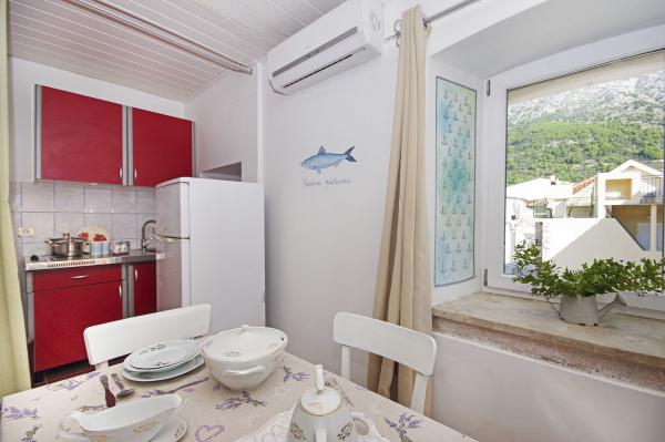 A ház része a barokk kastély 1760-ban épült. Védett emlék. A ház előtt van kilátás nyílik a tengerre és a Hvar-sziget. Mi nem újítja meg 2011-ben. Az apartman jól felszerelt, és megtartotta a szellem a múlt alkalommal. Játszott a halászati falu a makarskai riviérán, egy templom és egy jellegzetes harangtorony tetején a falu és a gyönyörű homokos strandok és tiszta víz.