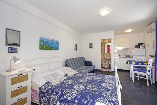 Kényelmesen elfértünk három főre az 1-es stúdióban, tengerre néző kilátással. Nagyon közel van a strandhoz, és egy csodálatos terasszal és pergolával rendelkezik.