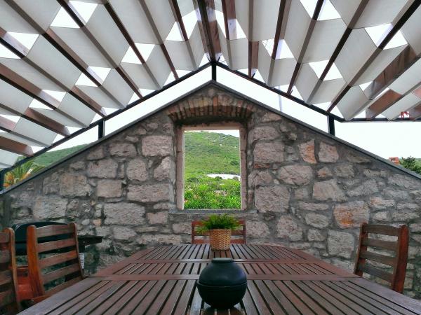 Exkluzívan berendezett kőház, három emeleten, eredeti kapitányi stílusban 1885-ből, 70 méterre a tengertől. A közvetlen szomszédságban 70 méter található templom, üzlet, kávézó, étterem, posta, rendelő és gyönyörű homokos strand. A ház 160 m2-es és két apartmanból áll. Az 1-es apartman 53 m2-es (fürdőszoba, hálószoba, nappali konyhával) A 2-es apartman 107 m2-es (3 hálószoba, két fürdőszoba, nagy nappali konyhával és tágas teraszok, ahonnan gyönyörű kilátás nyílik a tengerre. A ház fűtéssel és hűtéssel felszerelt rendszer.
