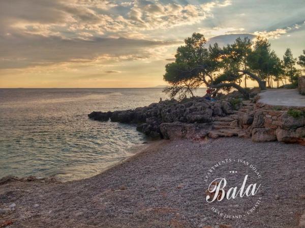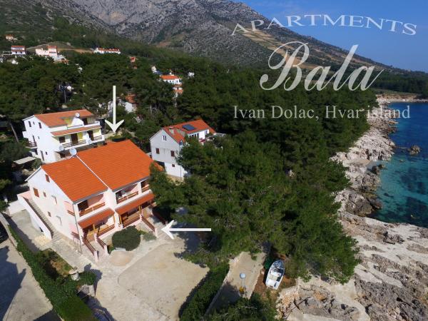 Bala apartmanok találhatók a tengerparttól és közel a strand egyik legjobb helyszín Ivan Dolac. Igényesen berendezett apartmanok és mindig elérhető házigazdák teszik a nyaralást felejthetetlenné. Az apartmanok mindegyike fedett terasz közvetlen kilátással a tengerre, a gyönyörű kert tele mediterrán növények teljessé a kandalló, amely mindig rendelkezésre áll. Türelmetlenül várja Önt!