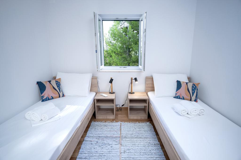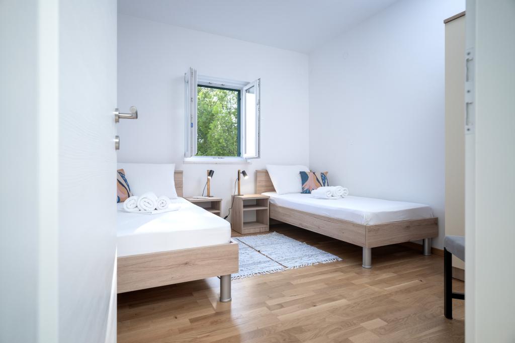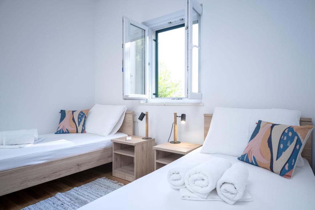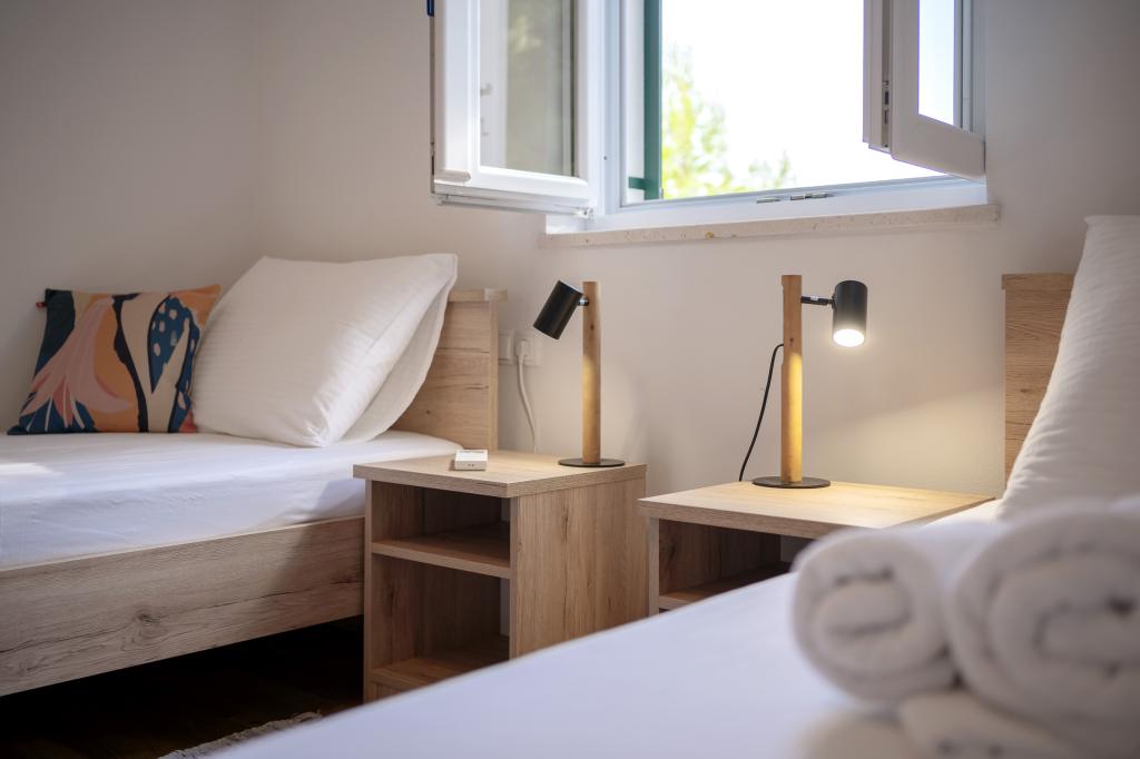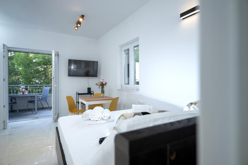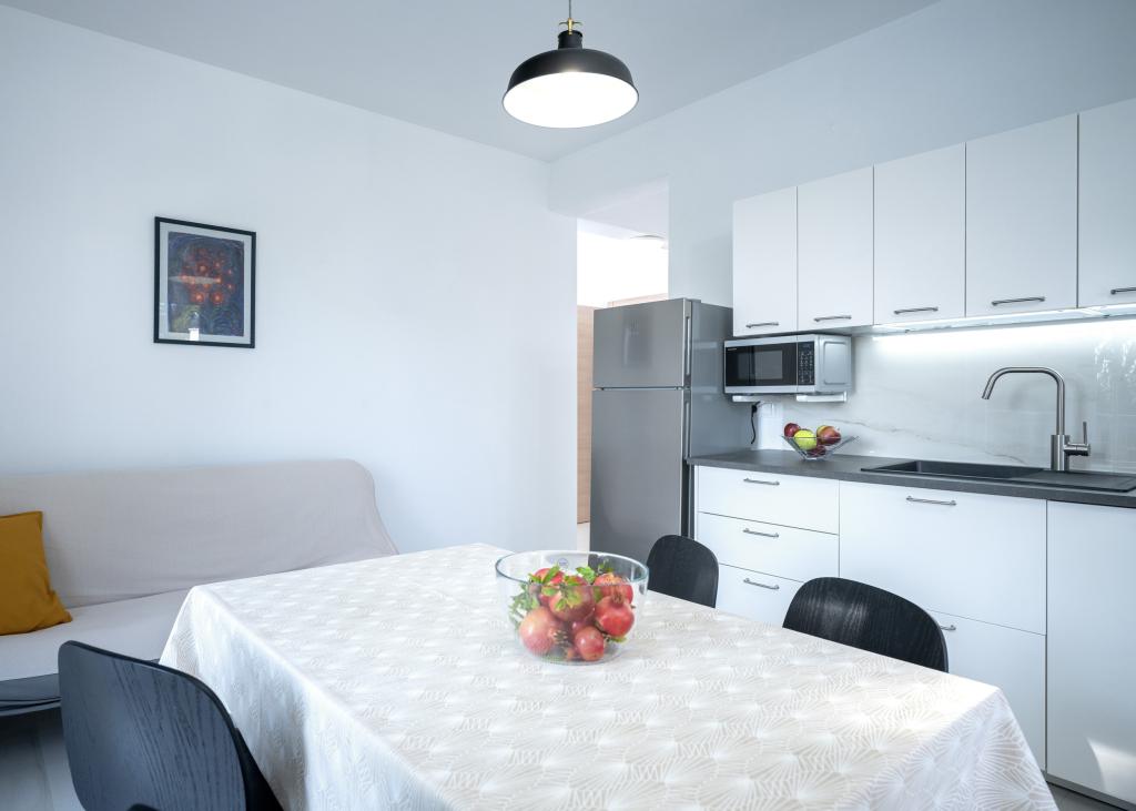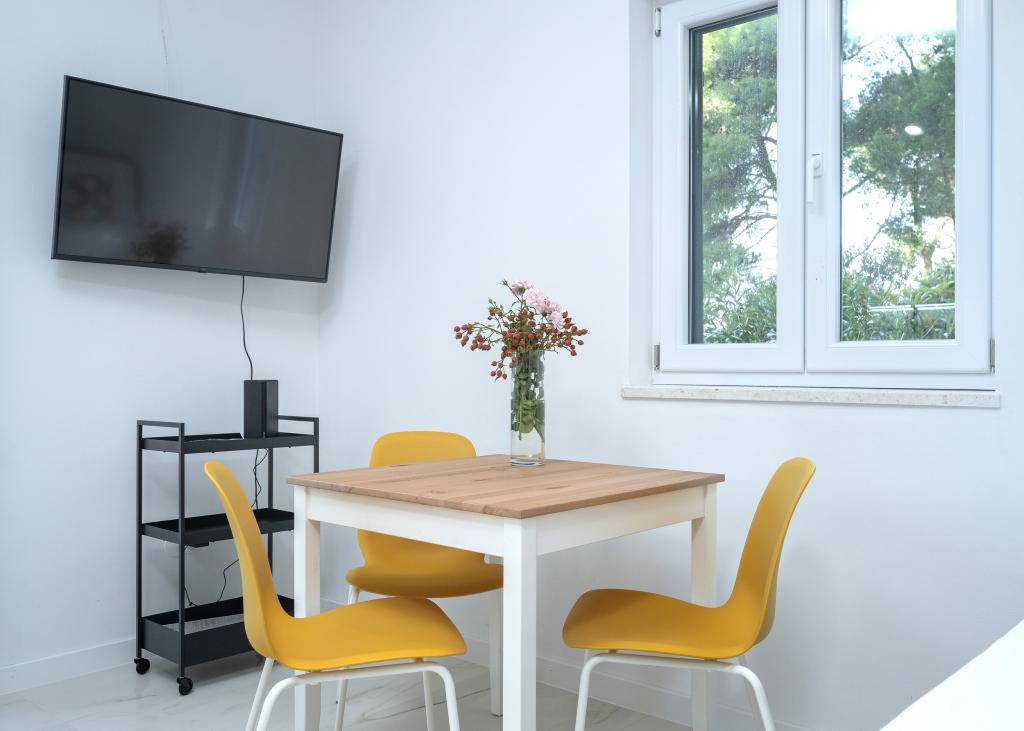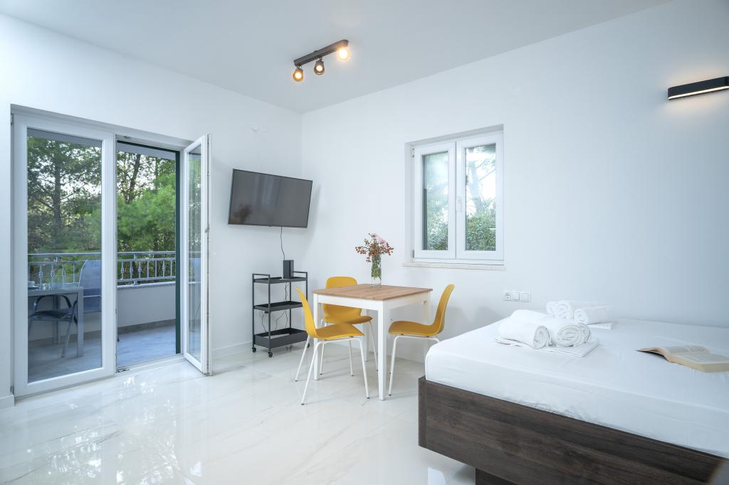Modern és kényelmesen berendezett új apartmanok Ivan Dolacban. A falu csendes részén találhatók, családi házakkal, pár perc sétára a strandtól. Az épületben két apartman és egy garzonlakás található.
