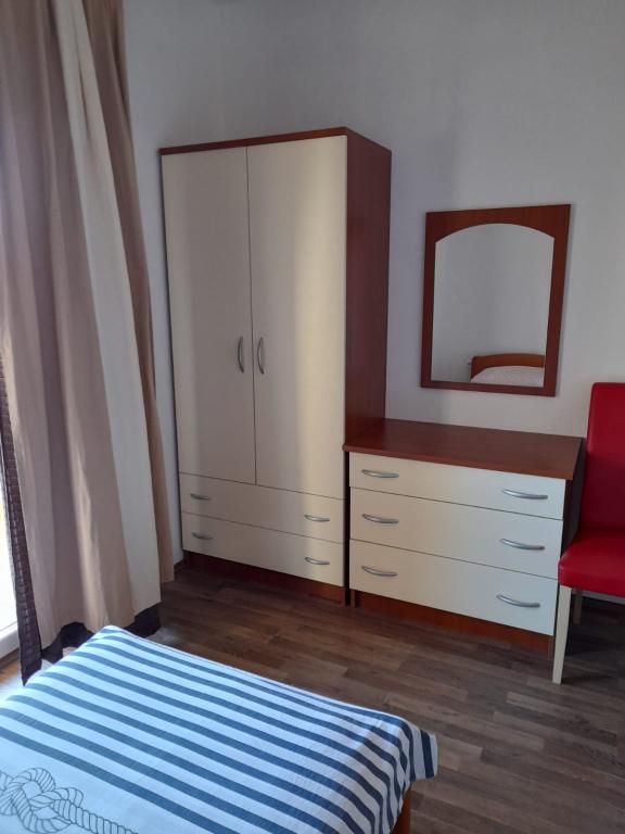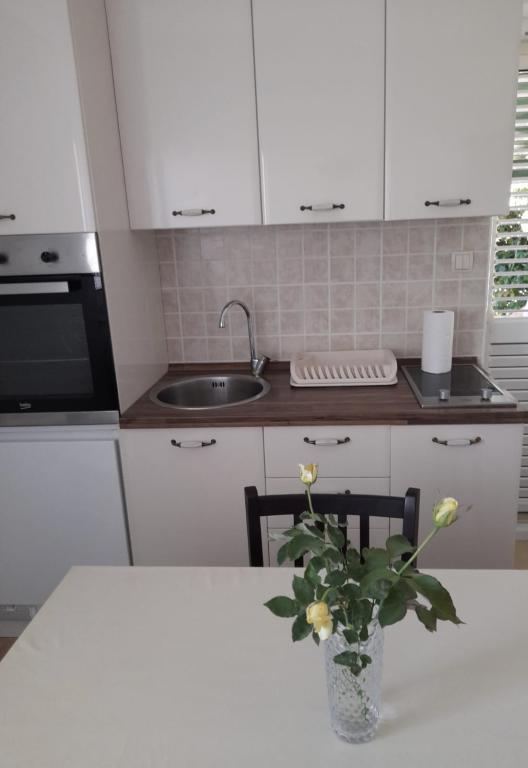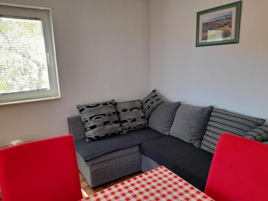 A helyszínünk Veli Iž, egy gyönyörű sziget Zadar közelében. Ha a város nyüzsgésétől, a zsúfolt strandoktól, a zajtól és a stressztől távol szeretne nyaralni, akkor ez az Ön számára megfelelő úti cél. Reggel, amikor felébred, a tiszta Adriai-tenger illatát és frissességét fogja érezni a levegőben, amely mindössze 5 perc sétára található. A hely kicsi, de különleges. Számos régi utca, természet, tenger, egy templom, amelynek harangjai zúgnak, így nem kell az időt néznie, 2 üzlet élelmiszerrel és kellékekkel, néhány kávézó a hűsöléshez különféle italokkal és éttermek, ahol kényeztetheti magát sziget specialitásaival és egyéb finom ételekkel. Az apartmanok kényelmesek, gyermekes családok és párok számára egyaránt alkalmasak. Minden megtalálható bennük, amire egy minőségi nyaraláshoz szüksége van. Minden elérhető távolságban van. A központ 7 perc sétára található. A létesítmény részét képező grillsütőt használhatja hal- és húsfőzéshez. Parkolás a ház előtt lehetséges. Minden apartmanhoz terasz tartozik a pihenéshez. Látogasson el Veli Ižre, és élvezze a sziget varázsát. Minden kérdésére válaszolunk