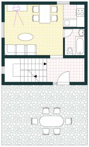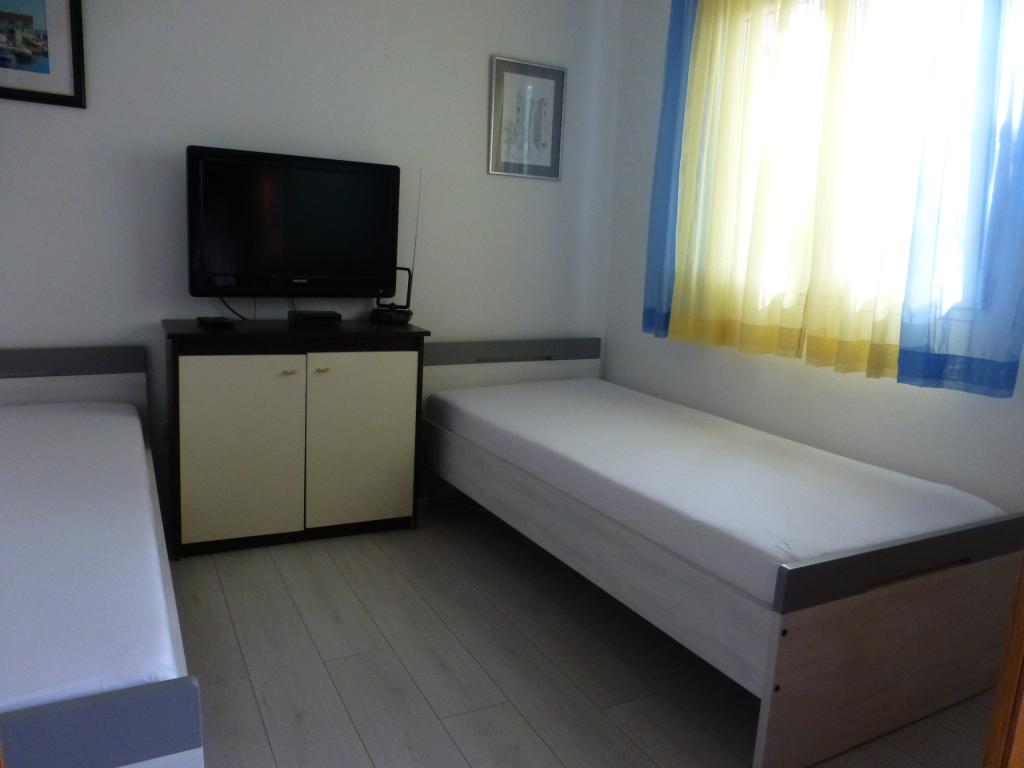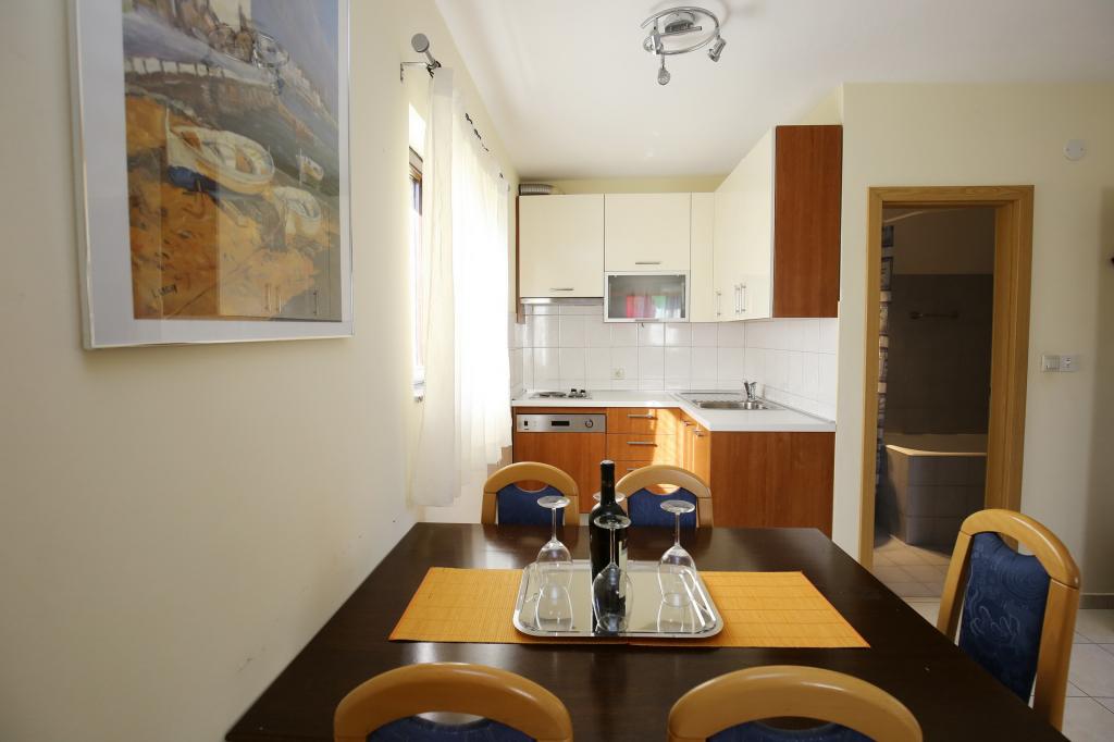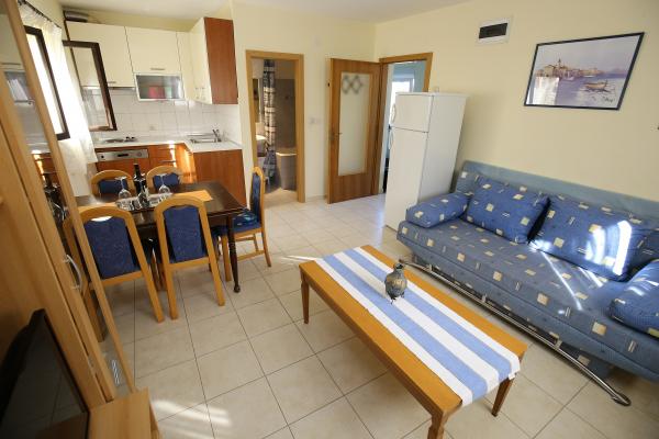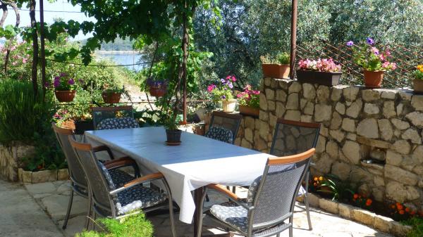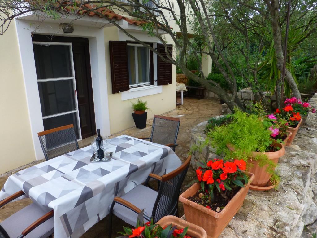 Apartman különálló lakóházként Mali Iž csendes részén, 200 méterre a kompkikötőtől, külön parkolóval. A földszinti apartmanhoz nappali, konyha és fürdőszoba tartozik, amely külön szoba vagy stúdió apartmanként használható, a földszinten pedig 2 szoba és fürdőszoba található. Külön udvar, grillezővel egy teljes napos tartózkodásra. Távolság a strandtól 5 perc gyalog. Biztonságos kikötőhely a hajó és a parkolás a nyomvonalak, wifi internet.