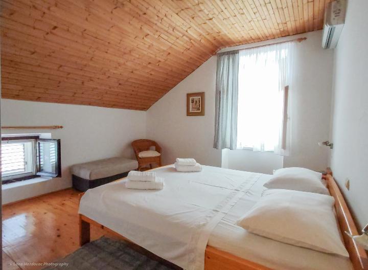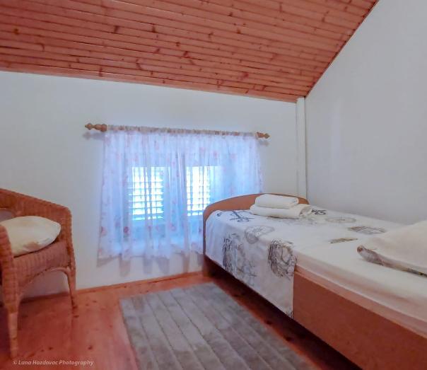 A Branka Ház egy felújított, régi kőház, otthonos és kényelmes egy öttagú család számára. A ház földszintes, a felső részen három kényelmes hálószoba és egy mosdós wc, a földszinten étkezős konyha, nappali és fürdőszoba található. A ház bejárata előtt van egy saját parkoló és egy nagy terasz - udvar - és kandalló - grill -. Iž szigetének strandjai sziklásak, homokosak és betonozottak. Ha a vendégnek van csónakja, a ház tulajdonosa ingyenes kikötést tud biztosítani, a vendég a lakóhelyi illetéket nem fizeti a ház árában.