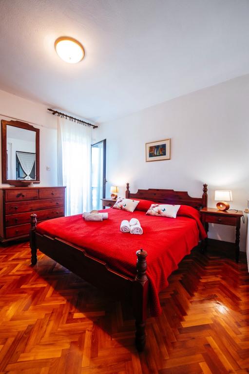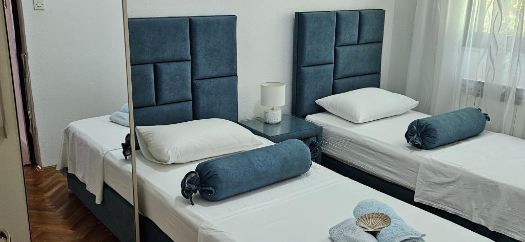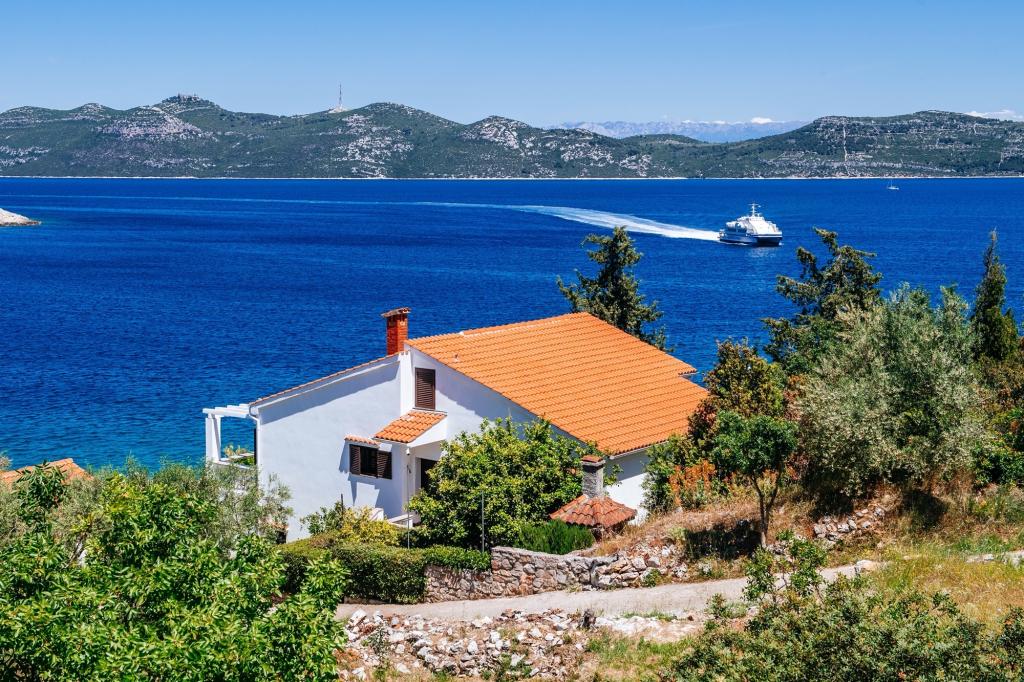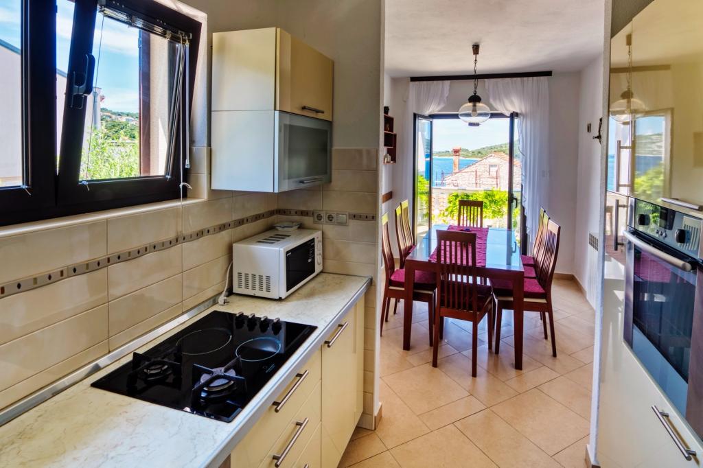 A Malinina családi ház Mali Iž városában található, nagyon közel a tengerhez. A házon belül külön vendéglő található grillel, asztallal és székekkel, valamint egy garázs. Két terasz, kilátással a tengerre, 2 szintes. Alsó emelet: 1 szoba 1 ággyal (90 cm, hossza 190 cm), 1 frank. ágy (160 cm, hossza 200 cm). Ebédlő. Nyitott konyha (4 főzőlap, sütő, fagyasztó). Fürdő / WC. Emelet: (kültéri lépcsők) nappali / étkező 45 m2, műholdas TV-vel. vevő. Kilépés a teraszra. 1 szoba 1 frankkal. ágy (160 cm, hossza 200 cm). Kilépés az erkélyre. 2 szoba 2 ággyal (90 cm, hossza 190 cm). Nyitott konyha (4 főzőlap, sütő, mosogatógép, fagyasztó). Zuhany / WC. Parkolás a ház mellett a telken, Háziállatok nem engedélyezettek.